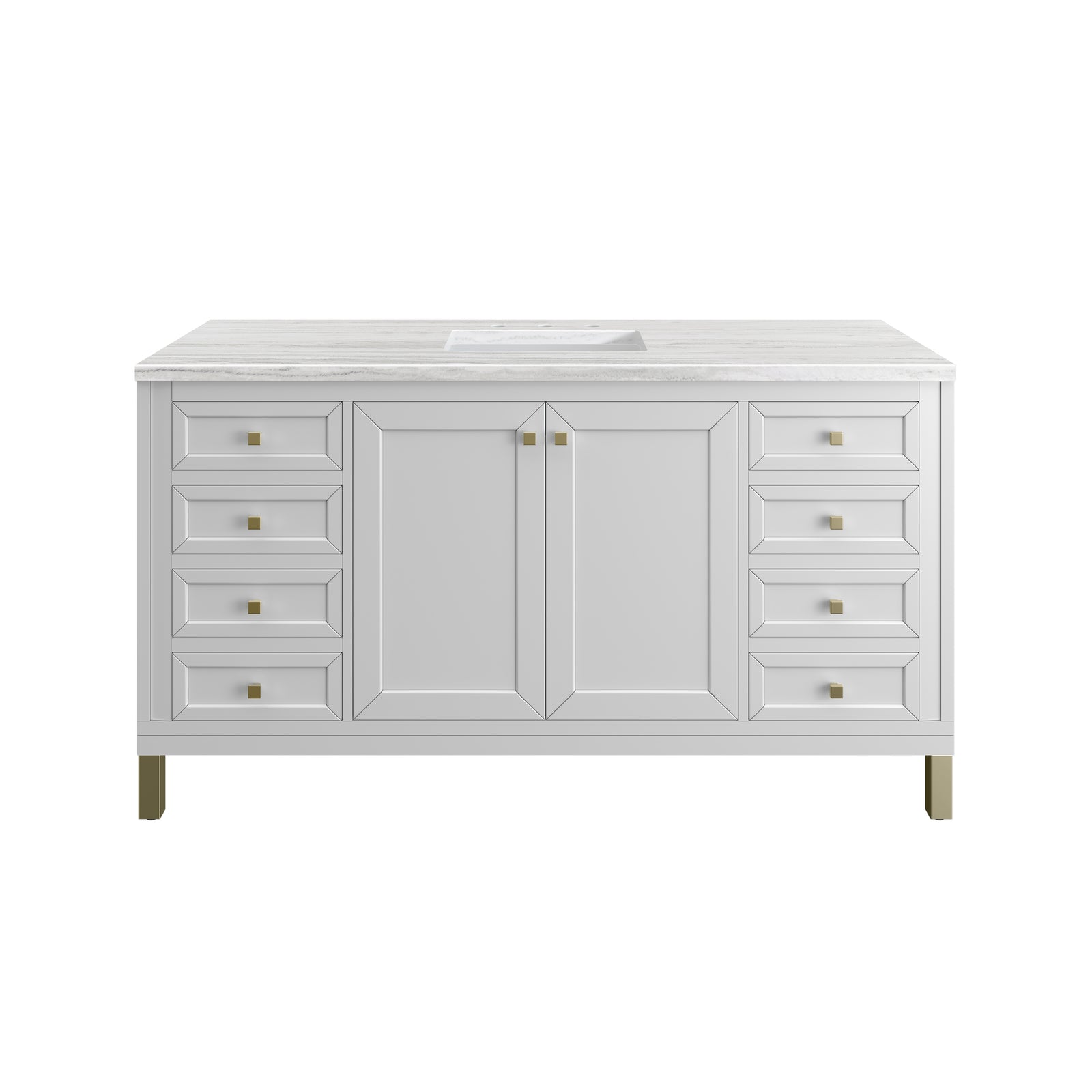 Chicago 60" Single Vanity, Glossy White, w/ 3 CM Eternal Jasmine Pearl SilestoneĀ® Top
