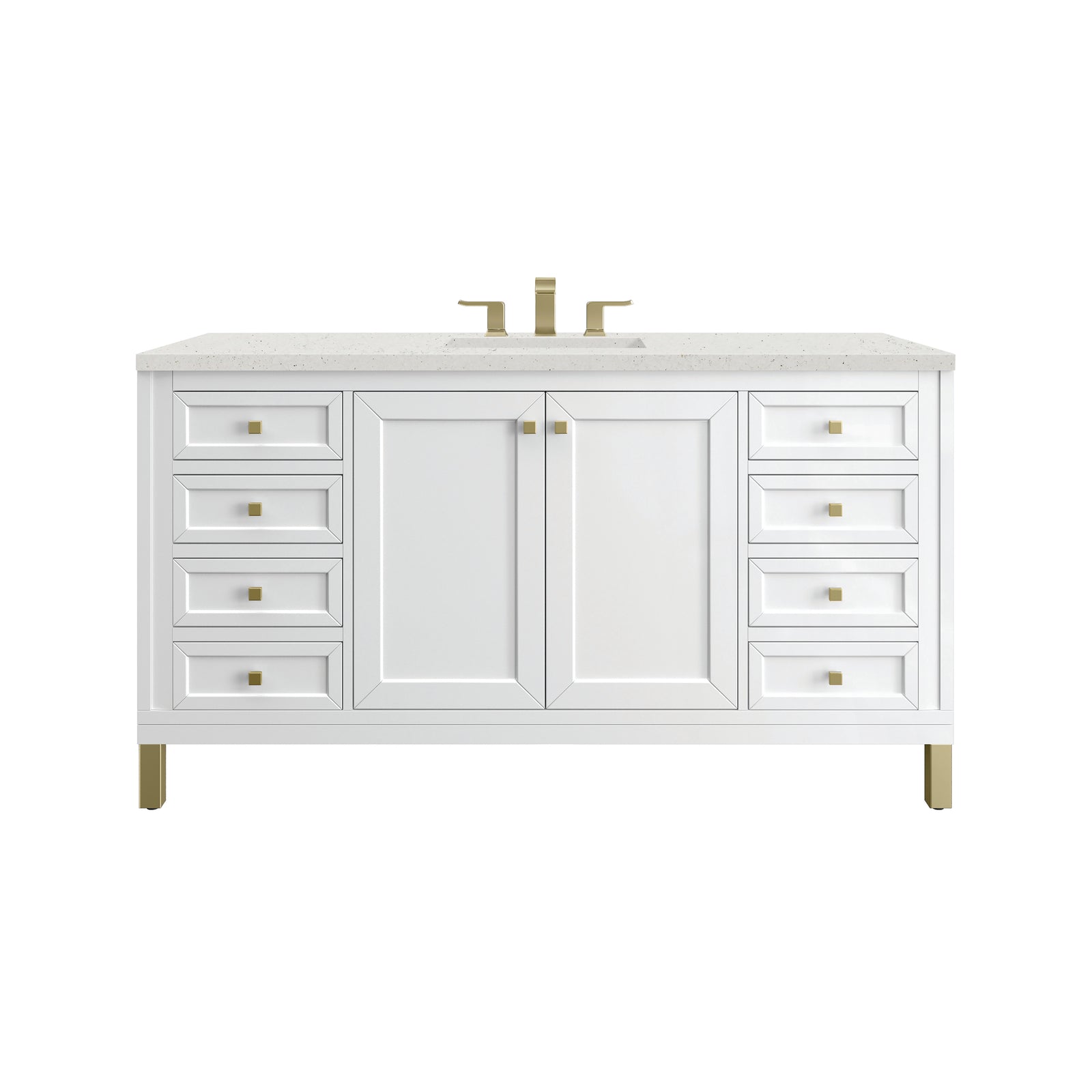 Chicago 60" Single Vanity, Glossy White, w/ 3 CM White Zeus SilestoneĀ® Top