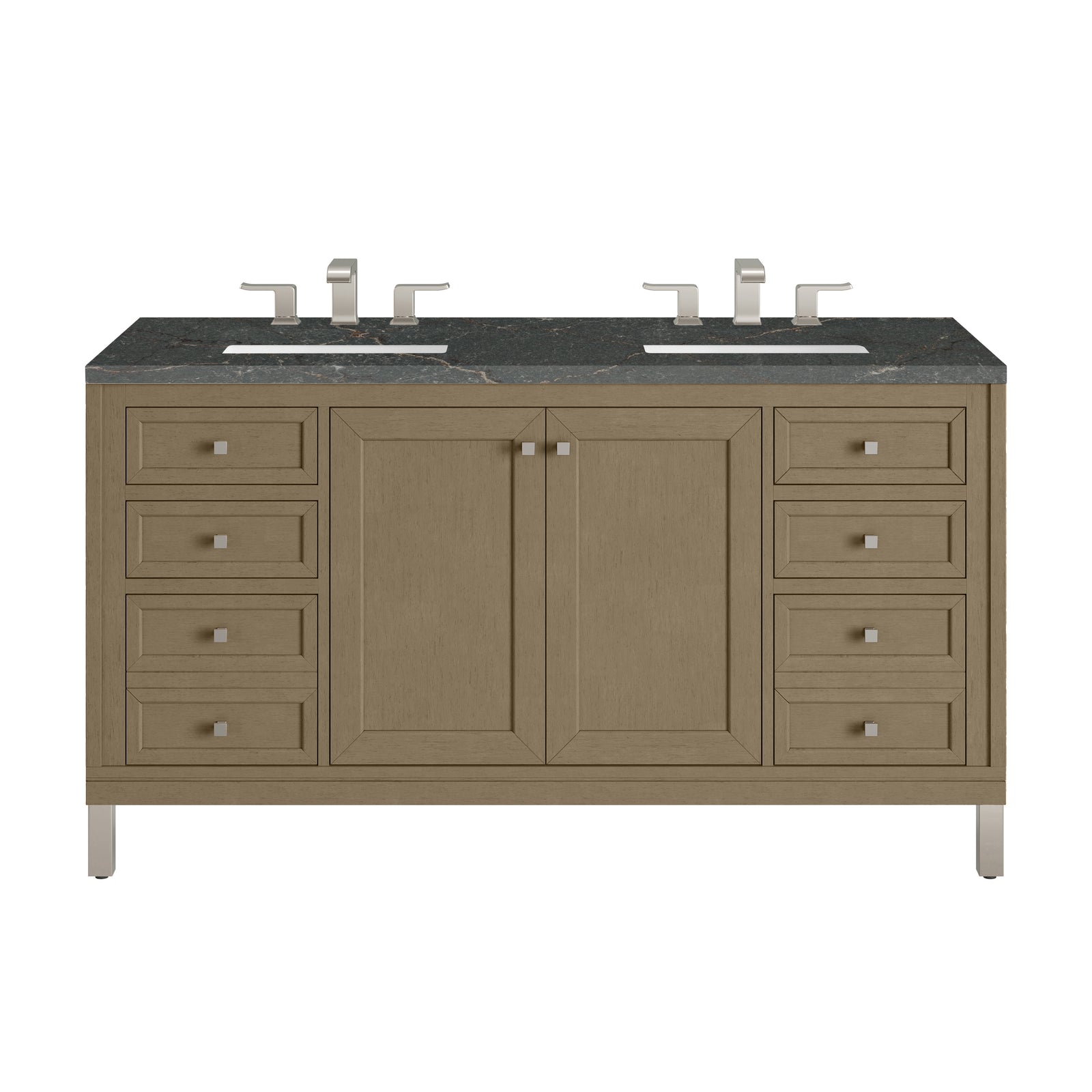 Chicago 60" Double Vanity, Walnut Whisper, w/ 3 CM Charcoal Soapstone SilestoneĀ® Top
