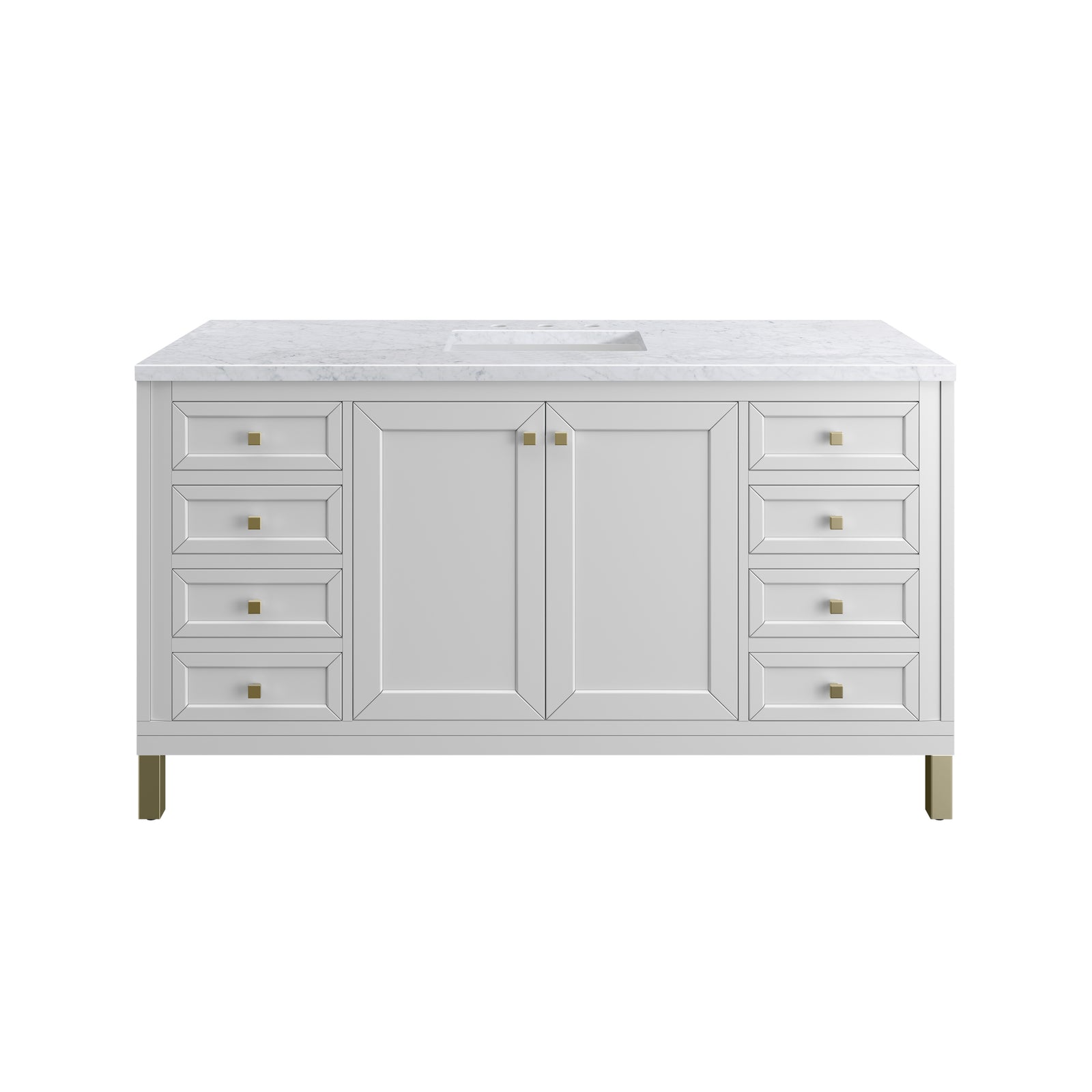 Chicago 60" Single Vanity, Glossy White, w/ 3 CM Carrara Marble Top