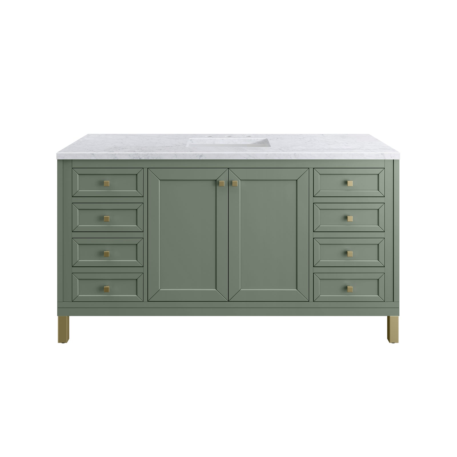 Chicago 60" Single Vanity, Smokey Celadon, w/ 3 CM Carrara Marble Top