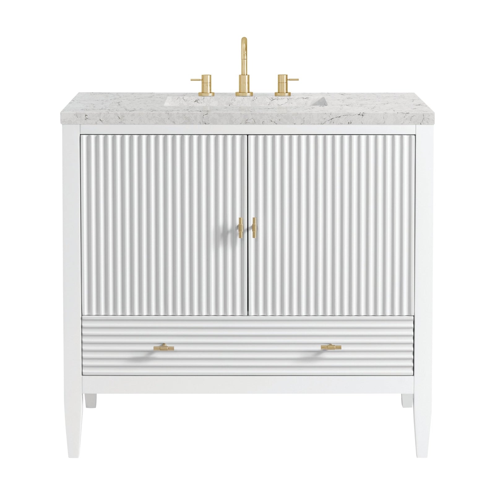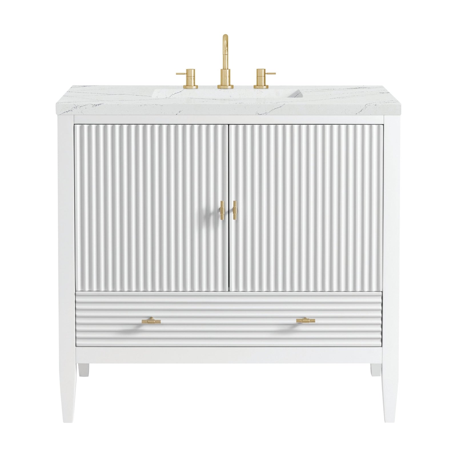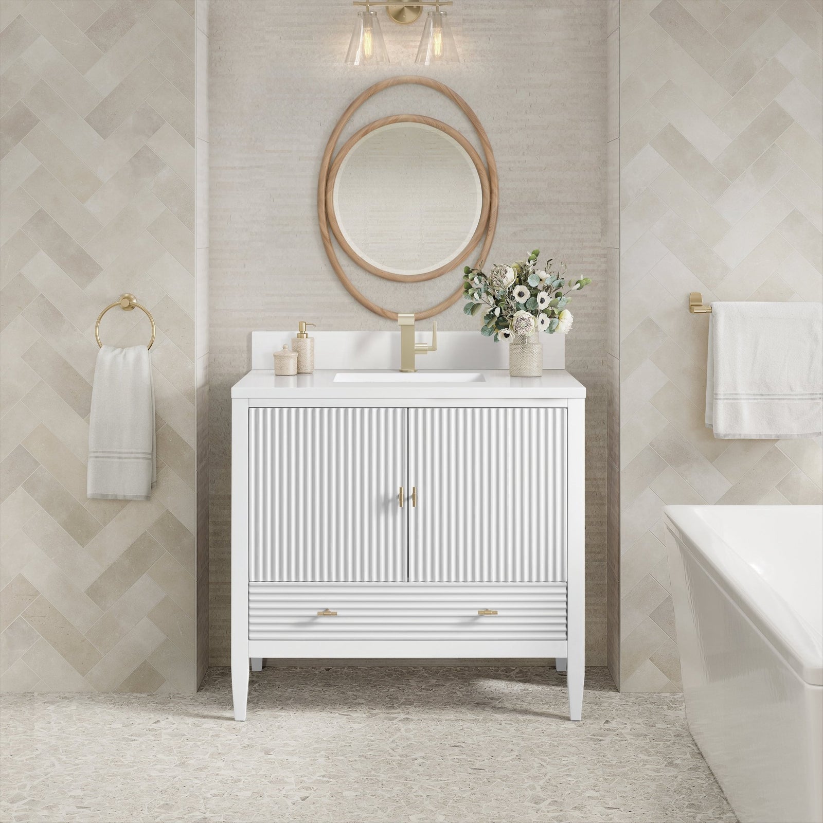 Myrrin 36" Vanity, Bright White w/ 3 CM Eternal Jasmine Pearl Silestone Top
