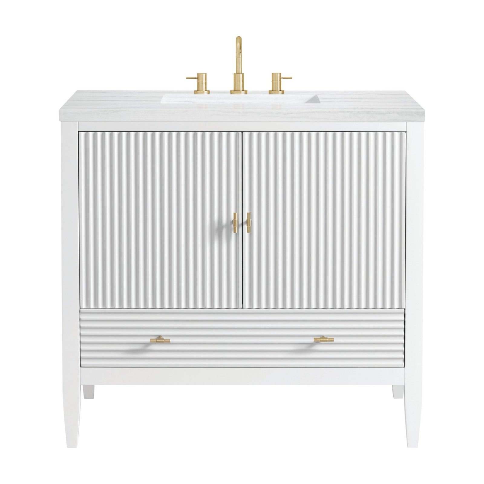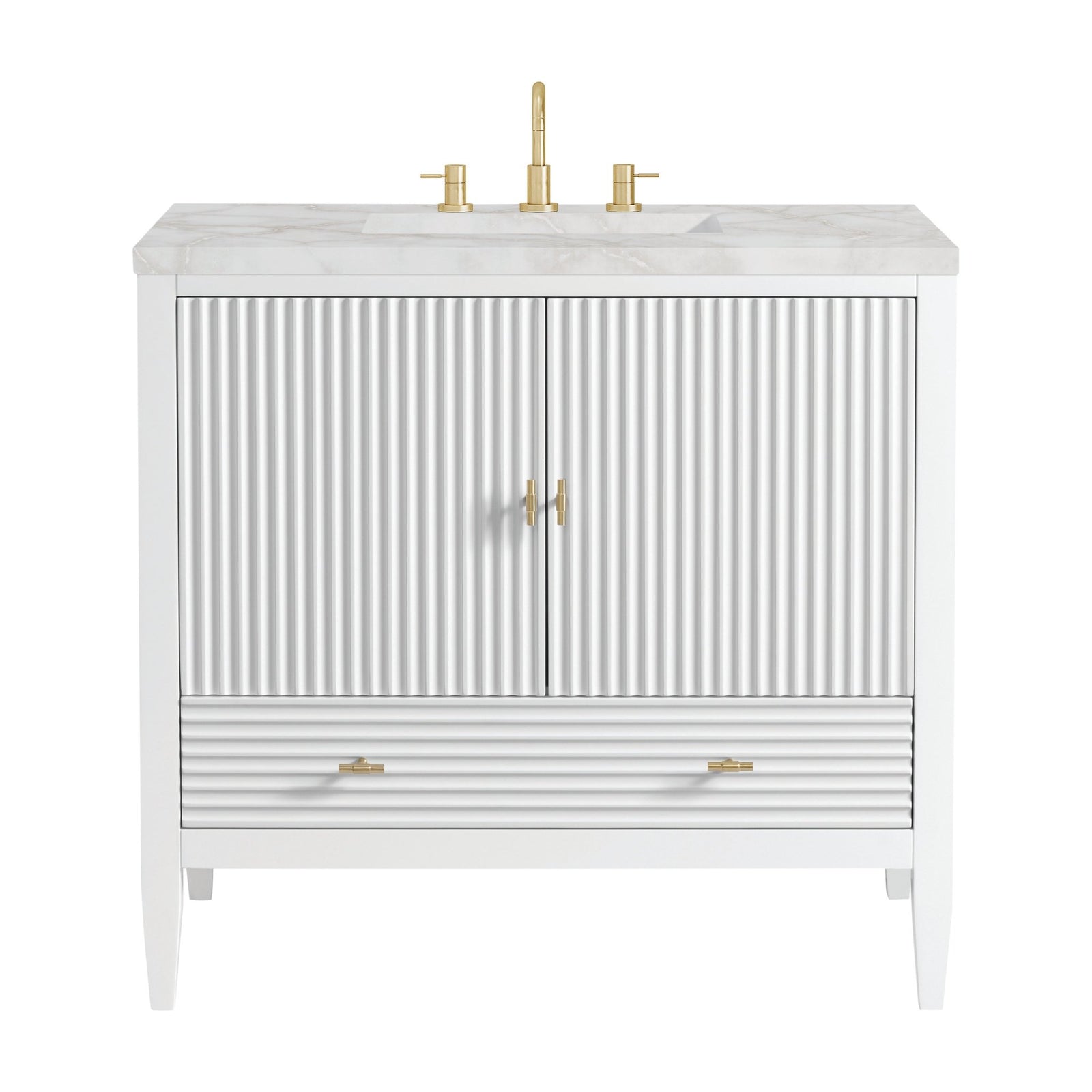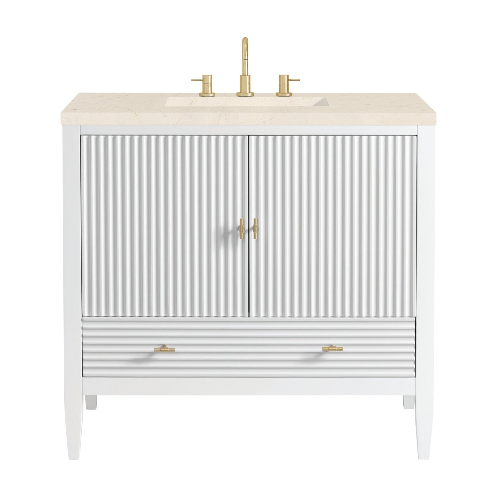 Myrrin 36" Vanity, Bright White w/ 3 CM Eternal Jasmine Pearl Silestone Top