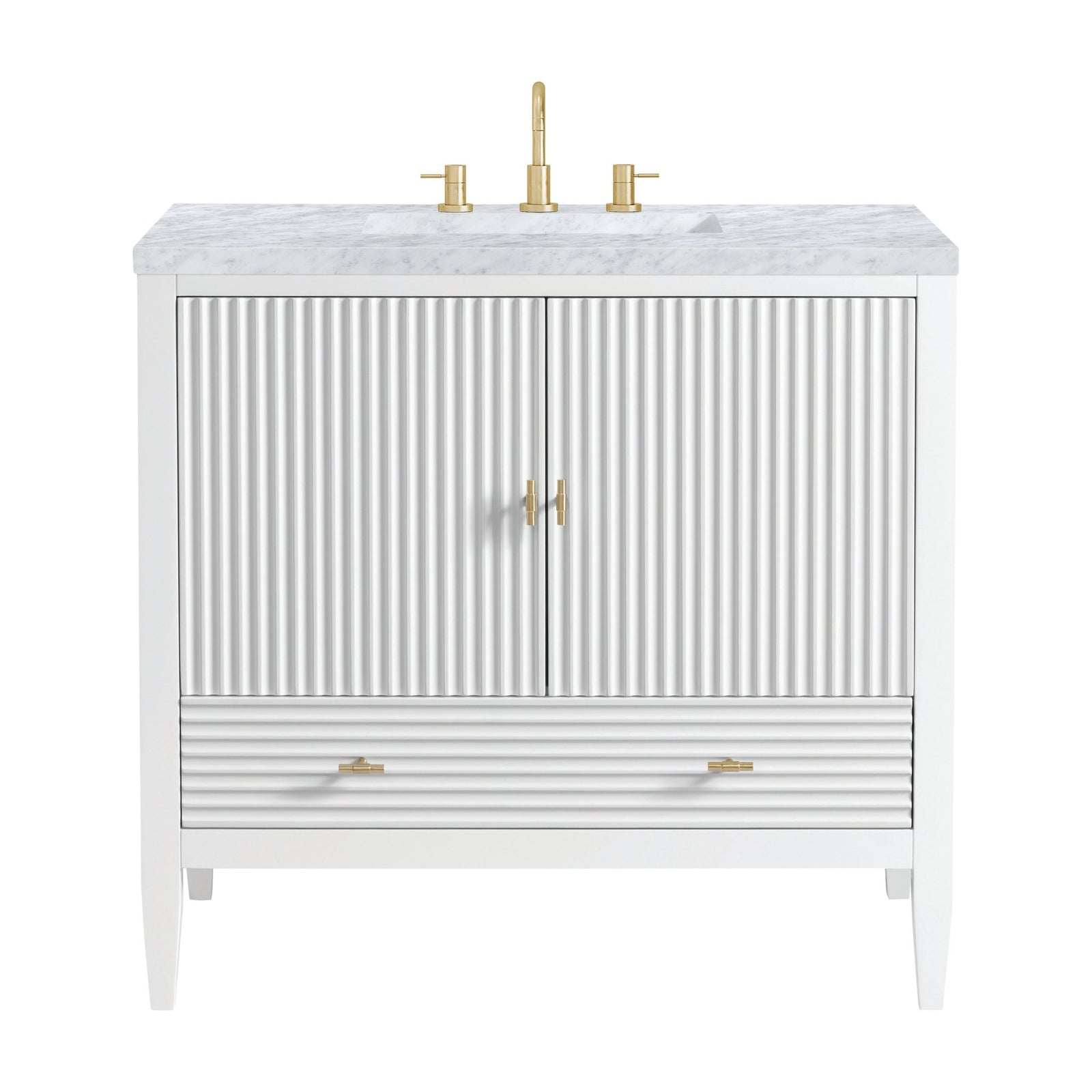 Myrrin 36" Vanity, Bright White w/ 3 CM Carrara White Marble Top