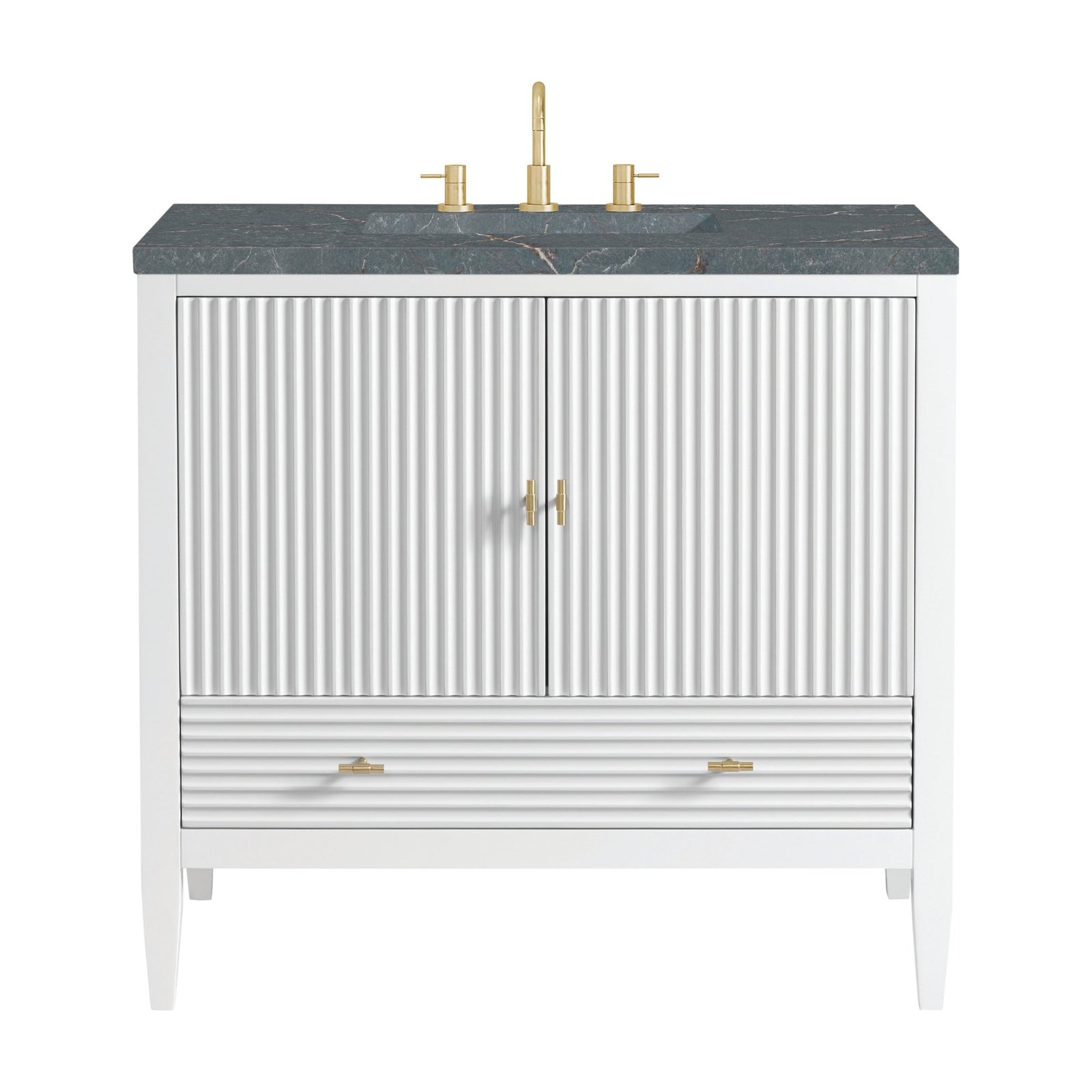 Myrrin 36" Vanity, Bright White w/ 3 CM Parisien Bleu Silestone Top