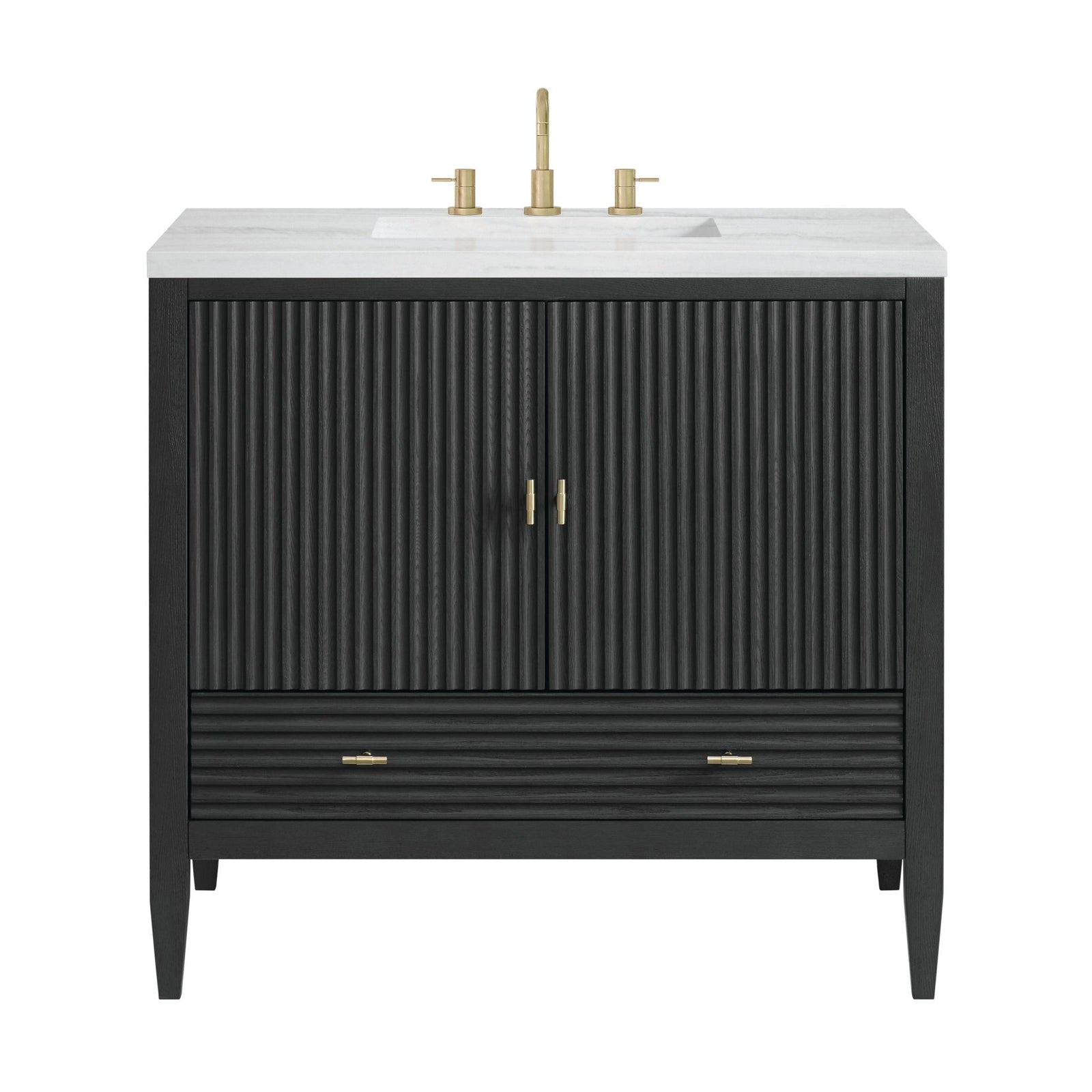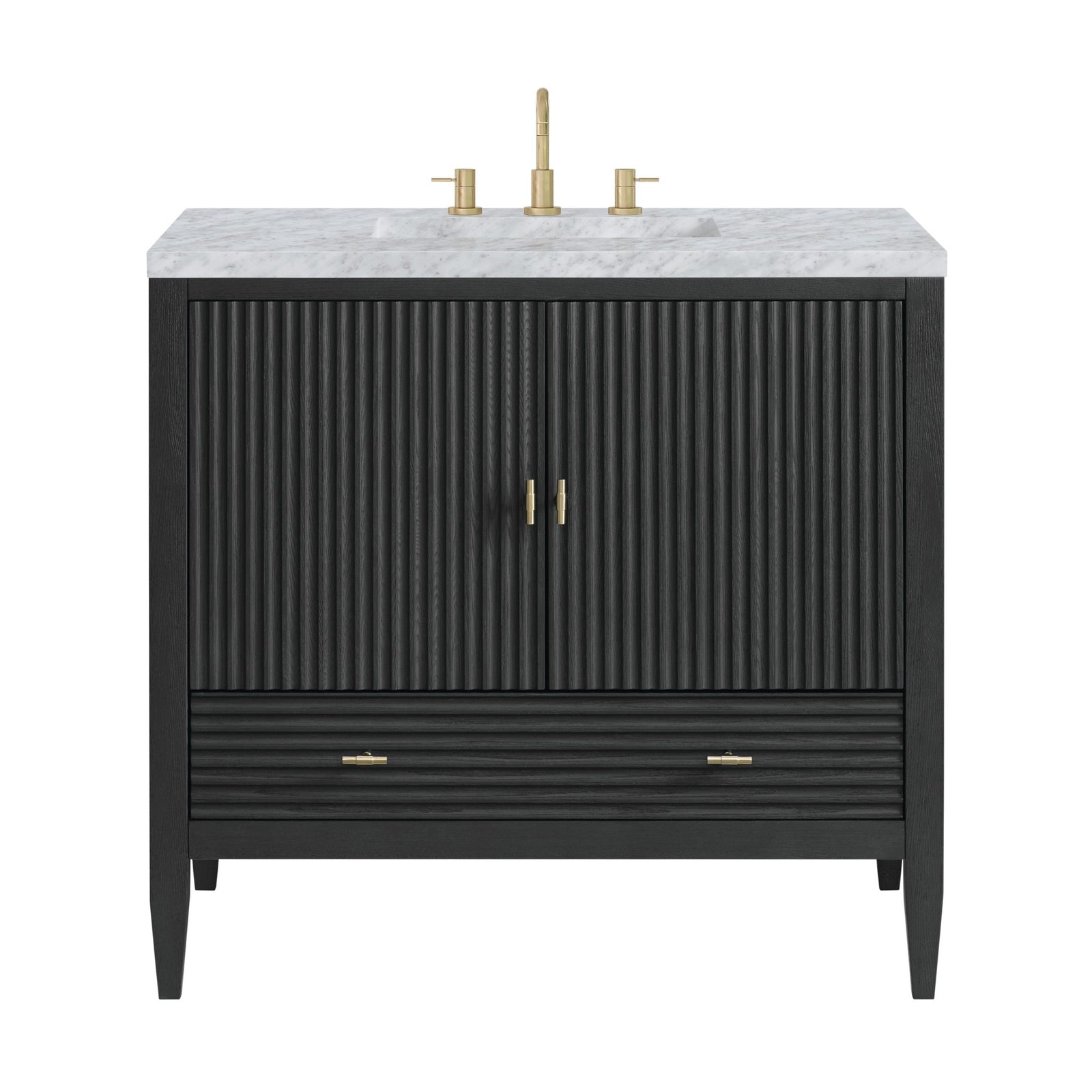 Myrrin 36" Vanity, Carbon Oak w/ 3 CM Carrara White Marble Top