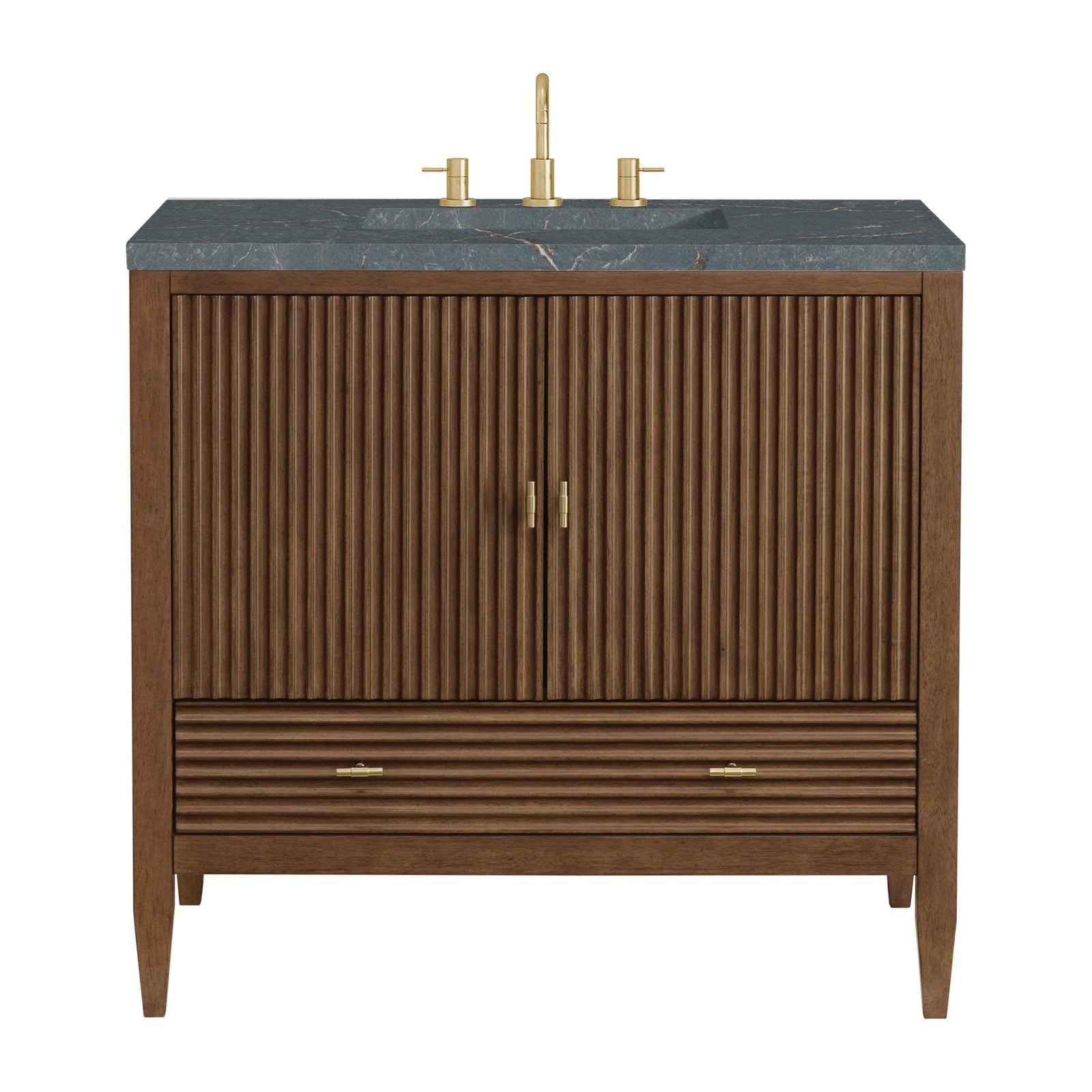 Myrrin 36" Vanity, Mid Century Walnut w/ 3 CM Parisien Bleu Silestone Top