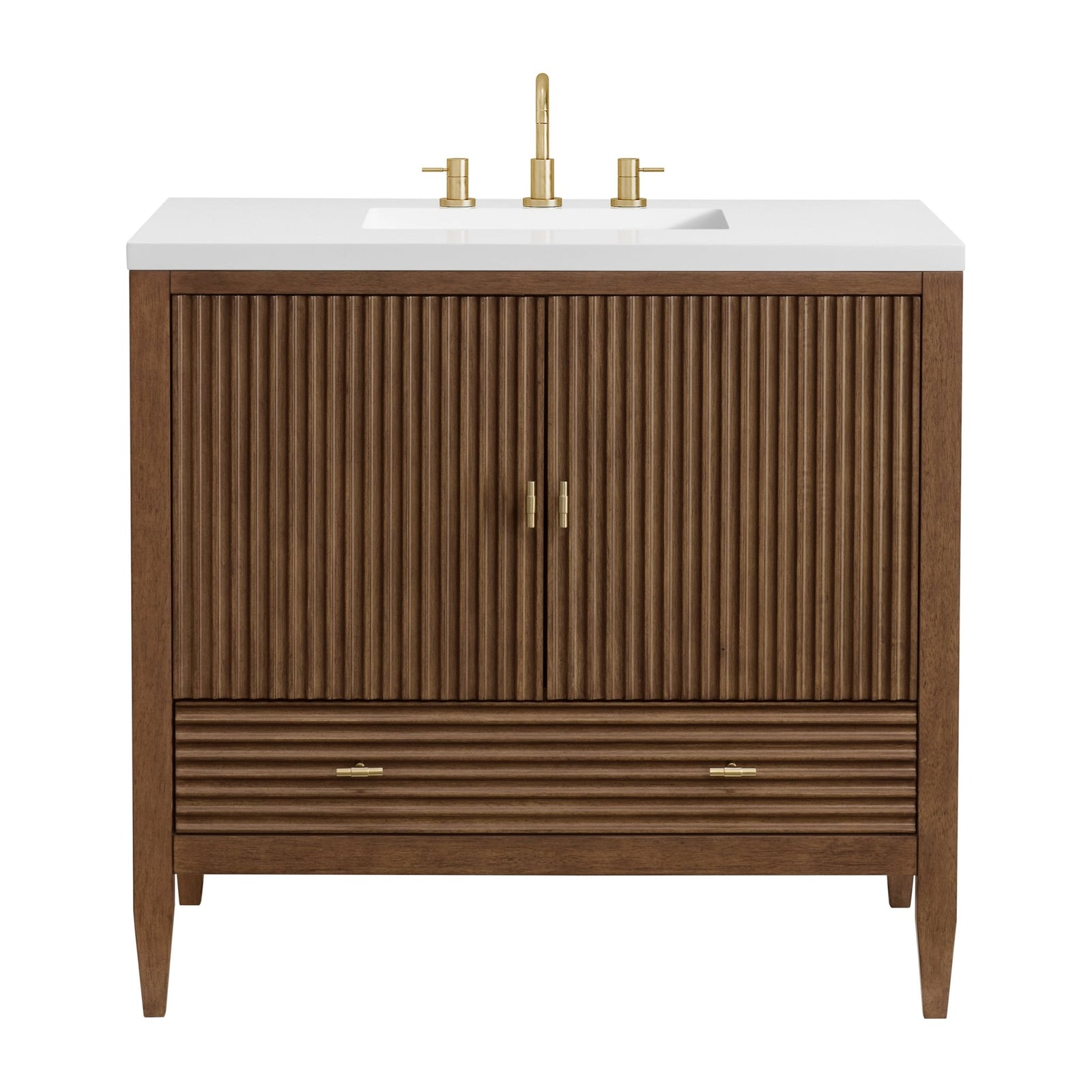 Myrrin 36" Vanity, Mid Century Walnut w/ 3 CM Eternal Marfil Silestone Top