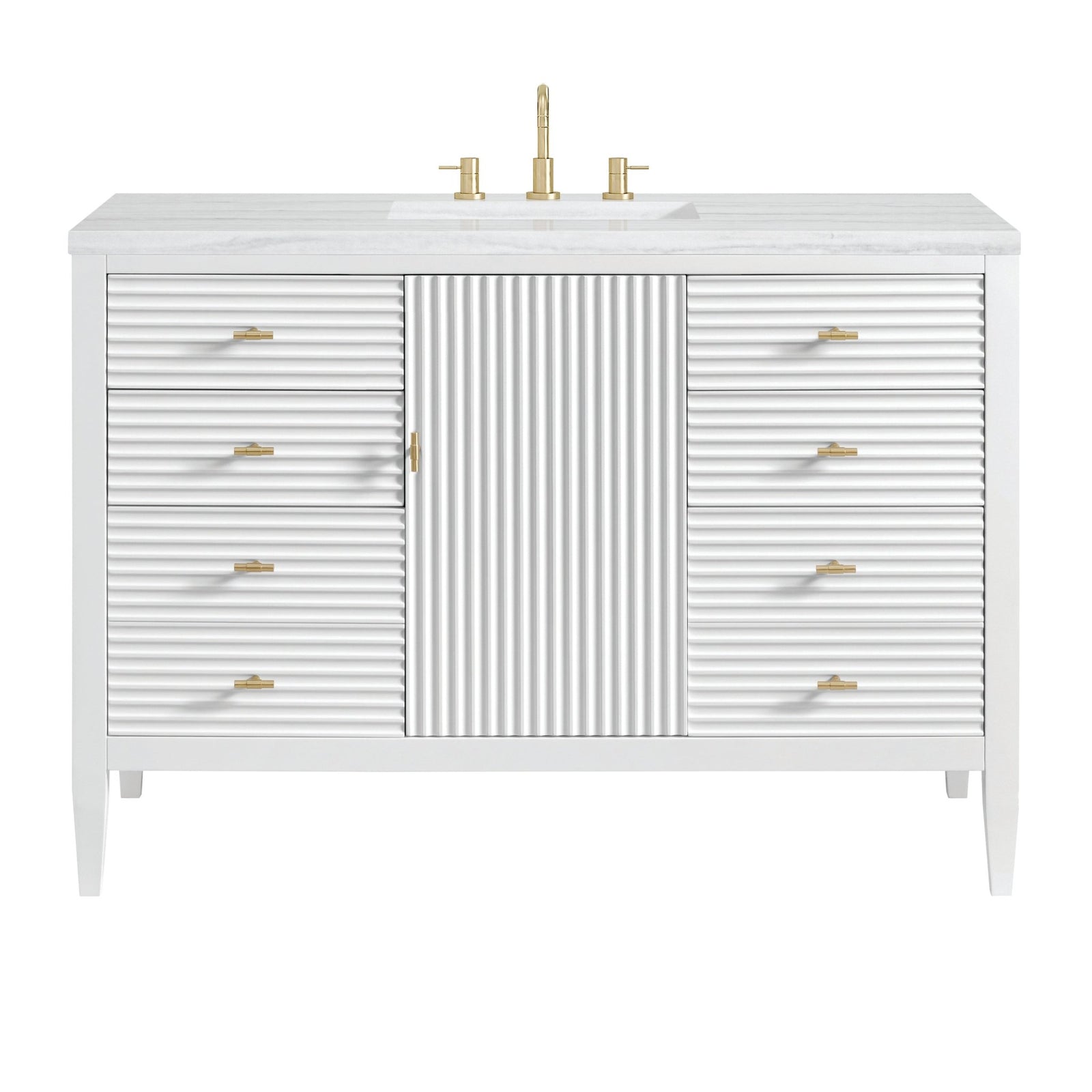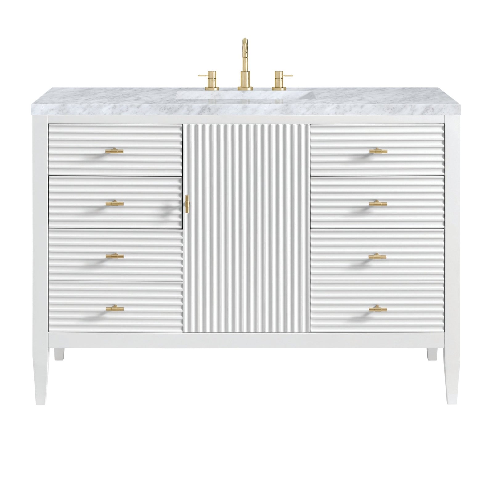 Myrrin 48" Vanity, Bright White w/ 3 CM Carrara White Marble Top
