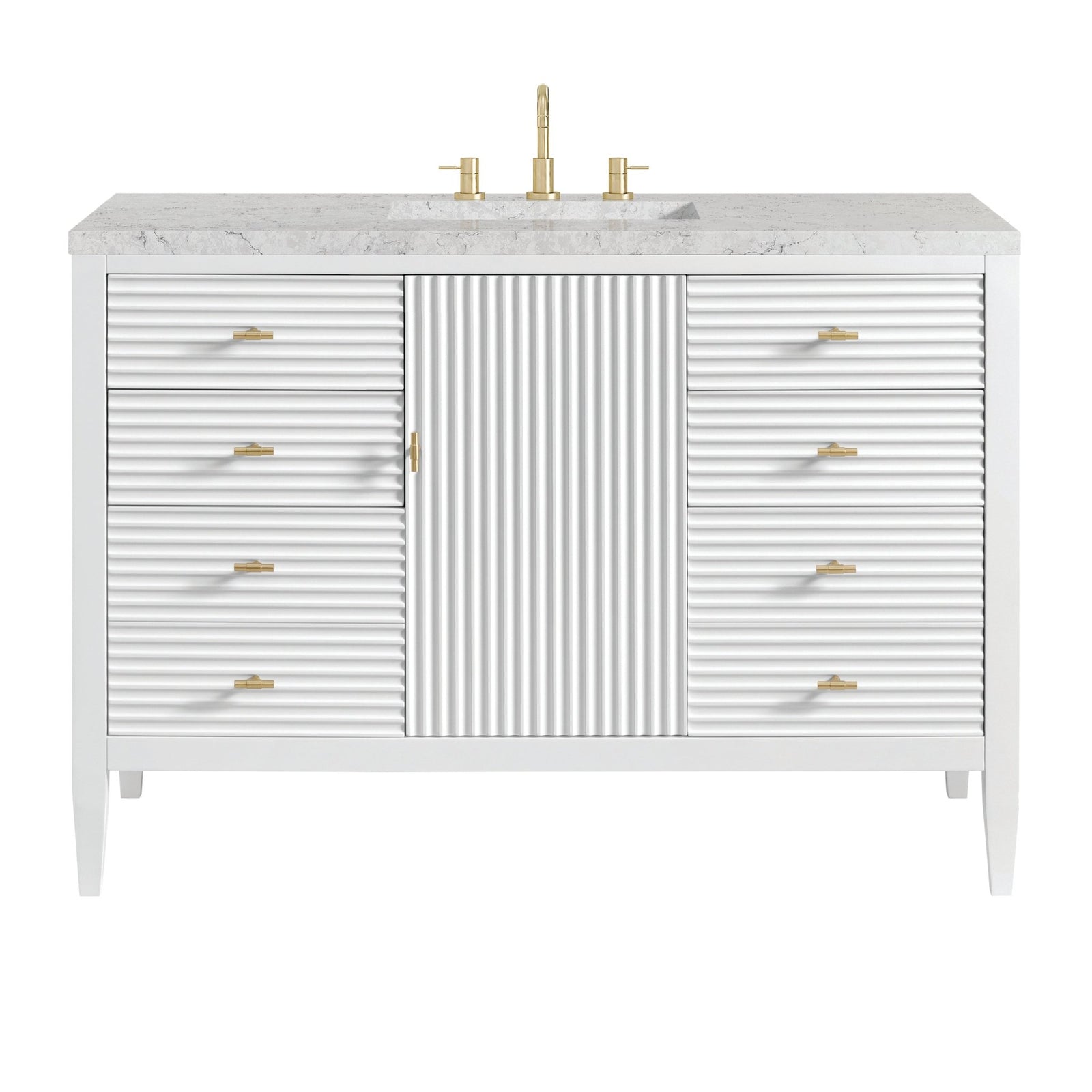 Myrrin 48" Vanity, Bright White w/ 3 CM Eternal Jasmine Pearl Silestone Top
