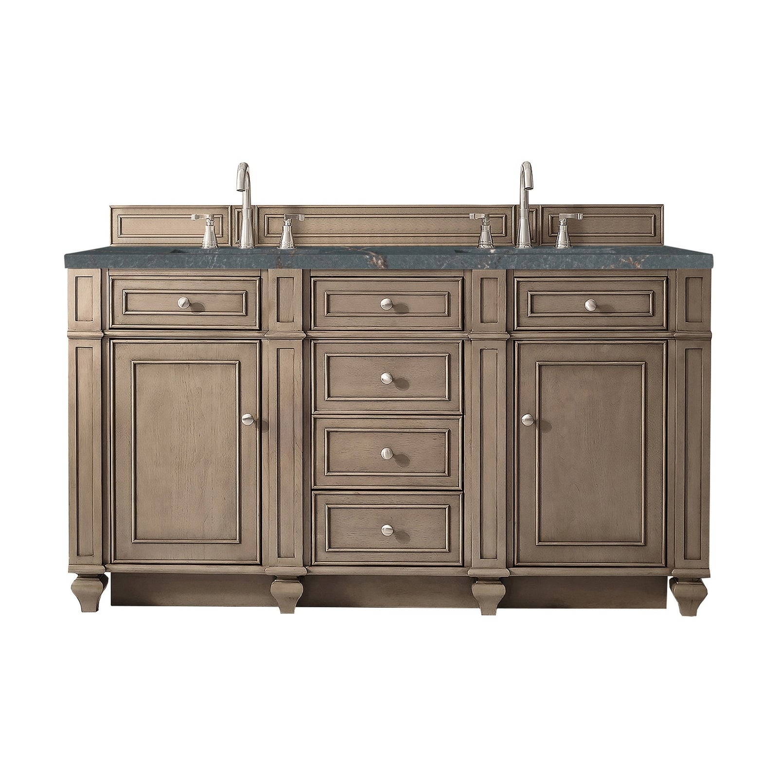 Bristol 60" Double Vanity, Whitewashed Walnut w/ 3 CM Charcoal Soapstone Silestone Top