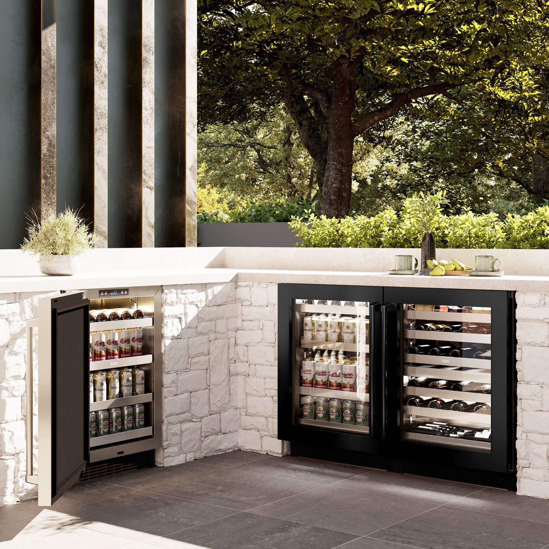 Experience the ultimate luxury with the ZLINE 24" Touchstone 151 Can Beverage Fridge. This fridge boasts an outdoor-compatible cooling system and a sleek stainless steel glass door, making it perfect for hosting parties of any size. Elevate your entertaining game with the masterfully crafted design of ZLINE Touchstone Beverage Fridges, perfect for both indoor and outdoor use.