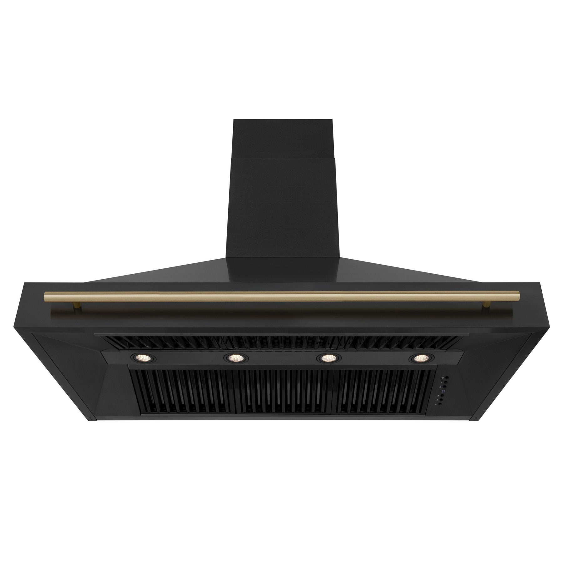 - ZLINE 48 in. Autograph Edition Black Stainless Steel Range Hood with Champagne Bronze Handle, BS655Z-48-CB