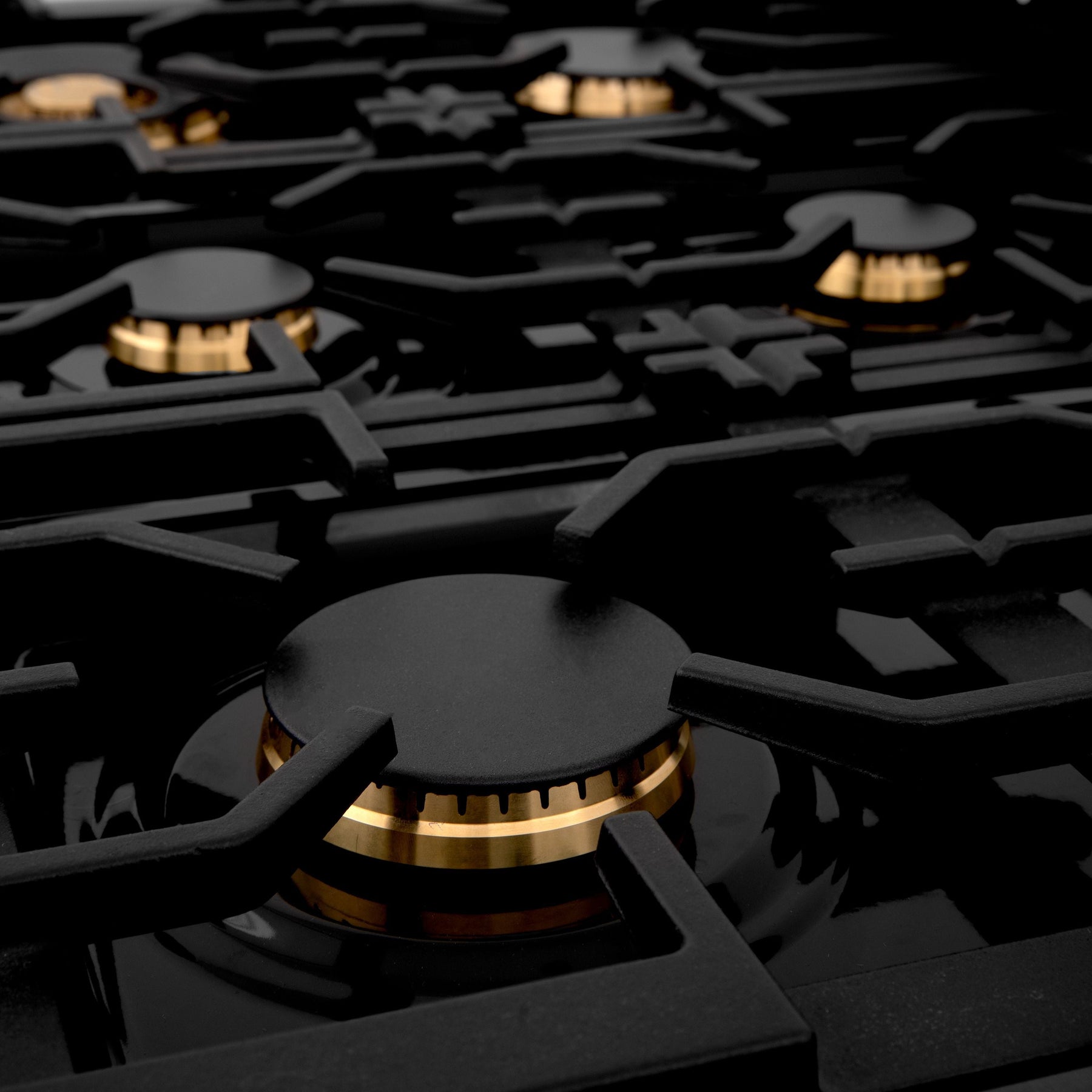 - ZLINE Autograph 48 in. Gas Burner/Electric Oven Range in Black Stainless Steel and Champagne Bronze Accents, RABZ-48-CB