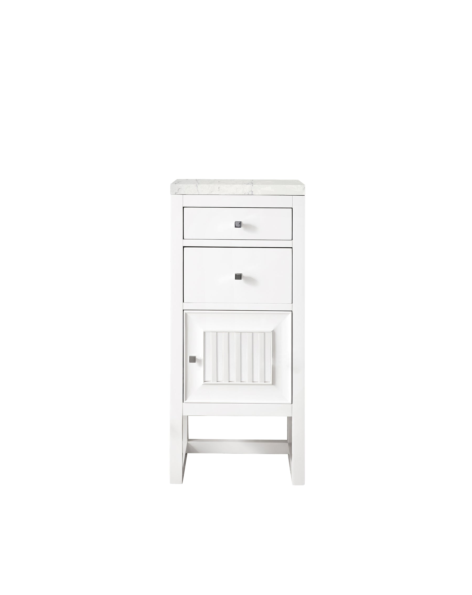 Bring a bit of the Greek Island home with the Athens 15” Glossy White Base Cabinet by James Martin Vanities. Part of the larger Athens modular collection, this incredible base cabinet boasts an impressive amount of storage space and combines traditional charm with modern functionality. Premium standard features include soft-close undermount drawer glides and adjustable door hinges, and brushed aluminium laminate drawer bottoms. This cabinet's door is right-facing, a left-facing option is available as well. The look is completed with a 3 CM eased edge Eternal Jasmine Pearl Silestone top.
