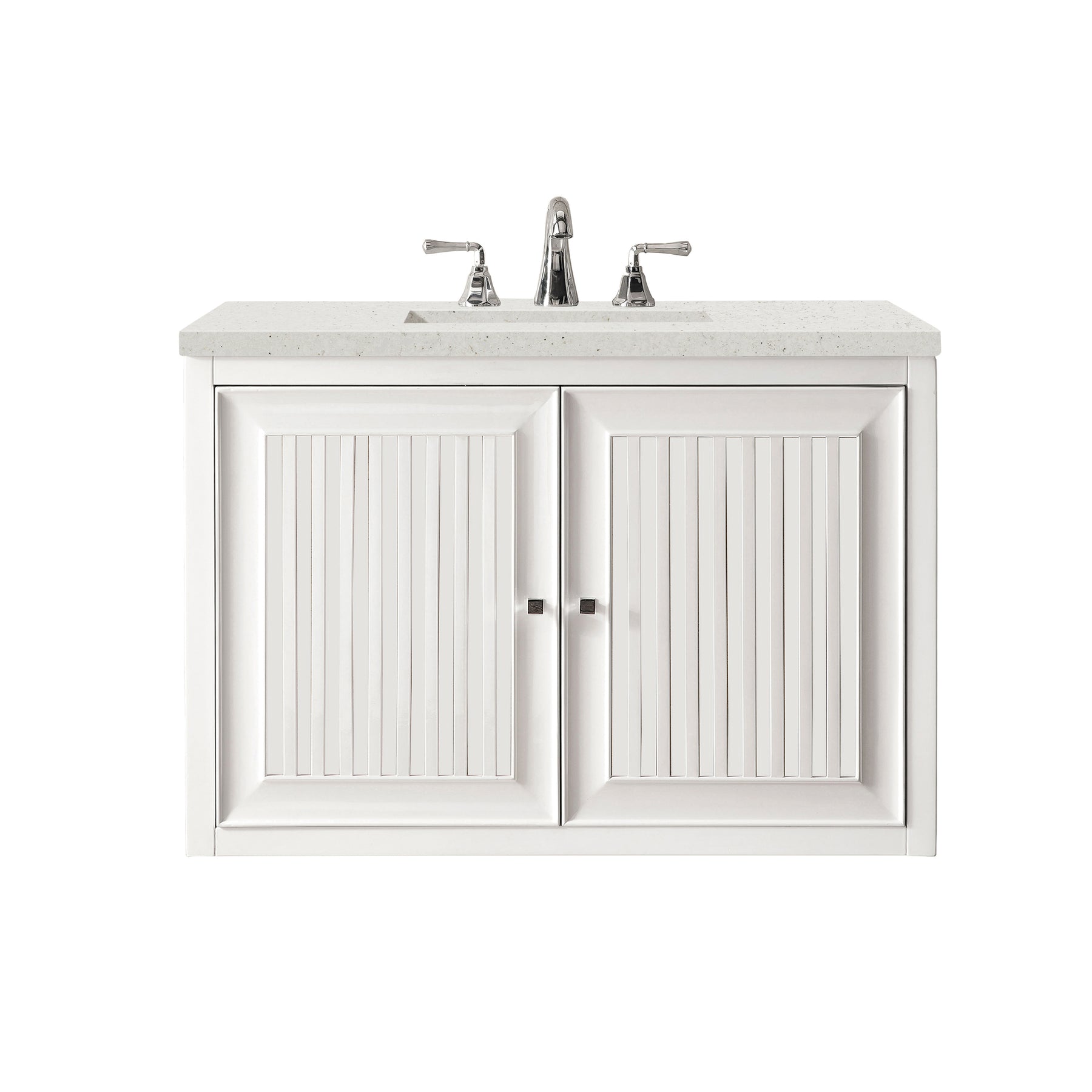 Customize your space with the Athens 30” Glossy White Single Vanity by James Martin Vanities. Part of the larger Athens modular collection, this incredible Vanity boasts an impressive amount of storage space and combines traditional charm with modern functionality. Premium standard features include soft-close undermount drawer glides and adjustable door hinges, a brushed aluminum laminate drawer bottom, and one bamboo drawer organizer. The Lime Delight Silestone top lends warm, textured beige tones to perfectly complement the wood finish on the vanity.