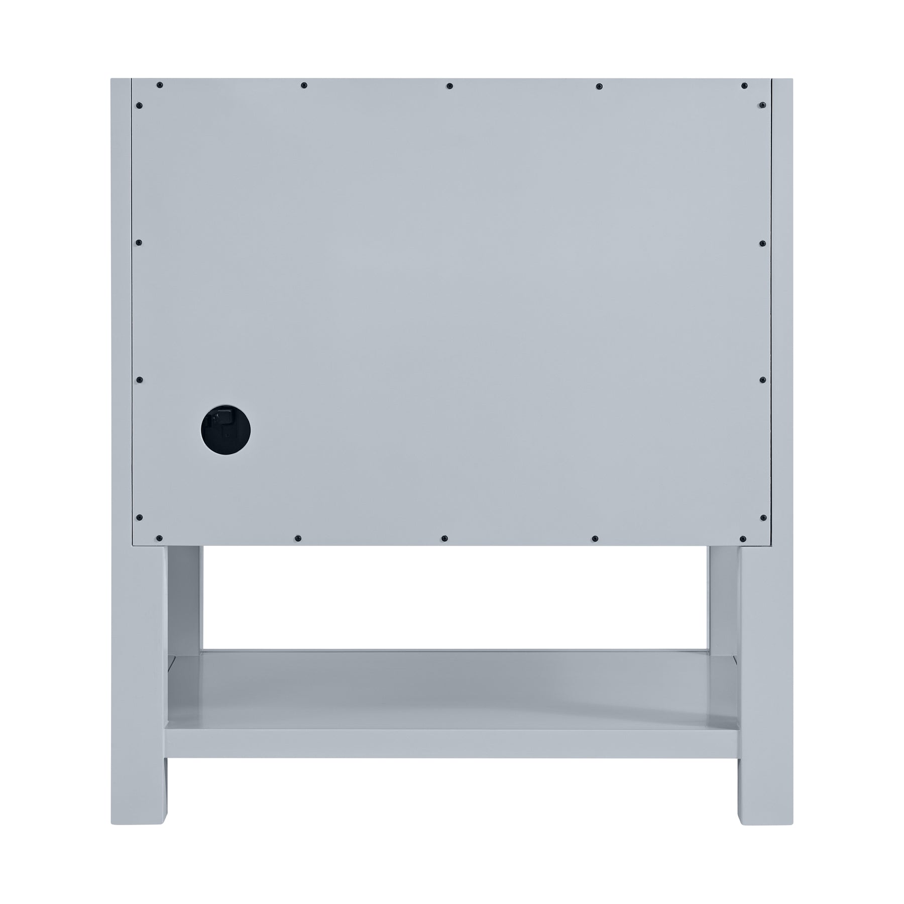 The Breckenridge 30" Single Vanity is a fresh take on traditional Mission furniture that easily transitions to Modern Farmhouse style with an air of understated sophistication. Satin Nickel knobs complement the Serenity Blue finish, while the neatly inset door and drawer fronts lend a fresh appeal to this clean-lined classic. A two-door cabinet opens to reveal an interior shelf equipped with convenient built-in USB/120V power outlet. This console-style vanity also features an open lower shelf for additional storage. A gorgeous Parisien Bleu Silestone top with undermount sink completes the look.