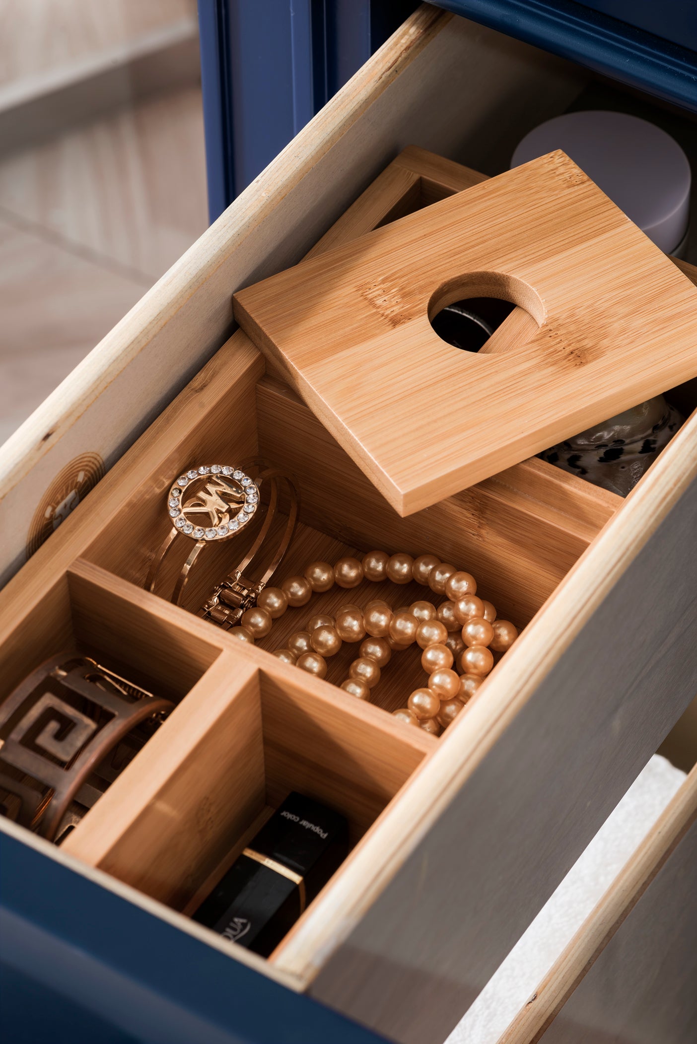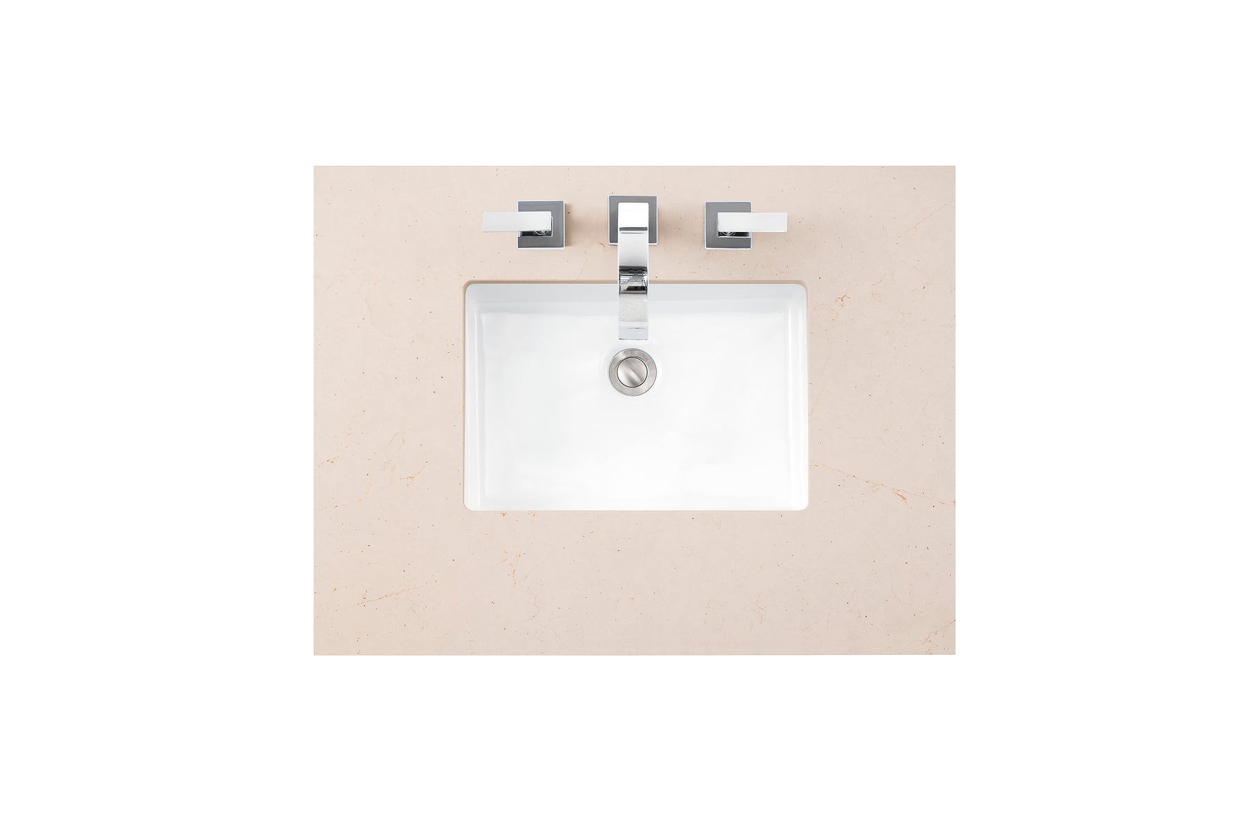 The Brittany 30" Urban Gray Single Vanity by James Martin Vanities features classic details that bridge both traditional and transitional styles. This beautiful piece of furniture includes one hide-away tip-out, top row drawer plus two full-depth side drawers, one of which is double-height for storage of taller items. This cabinet also has one door, which conceals an interior shelf for ample storage, and a bamboo drawer organizer. Handcrafted in yellow poplar solids and veneers with satin nickel hardware. Matching wood backsplash is included. The look is completed with a 3 CM eased edge Eternal Marfil Silestone top by Cosentino and one white ceramic sink.