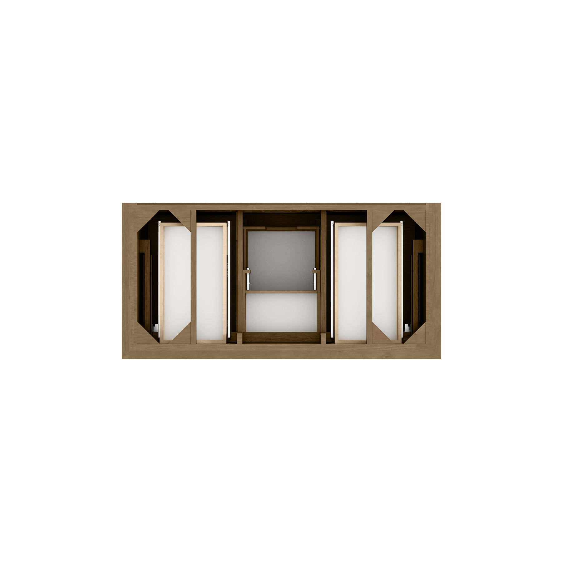 The Brookfield 48" Single Vanity in Honey Oak by James Martin Vanities offers a blend of traditional elegance and contemporary sophistication. The raised panel picture frame doors and detailed corner molding reflect timeless craftsmanship, while the warm Honey Oak vanity finish and Champagne Brass hardware lend a fresh, modern appeal. This beautifully crafted piece features two single-door cabinets that open to interior shelves, three standard drawers and one double height drawer for ample storage. The warm wood tones highlight the natural Oak wood grains, lending sophistication and charm to your space. The addition of an Ethereal Noctis SilestoneĀ® top with undermount sink completes the look.