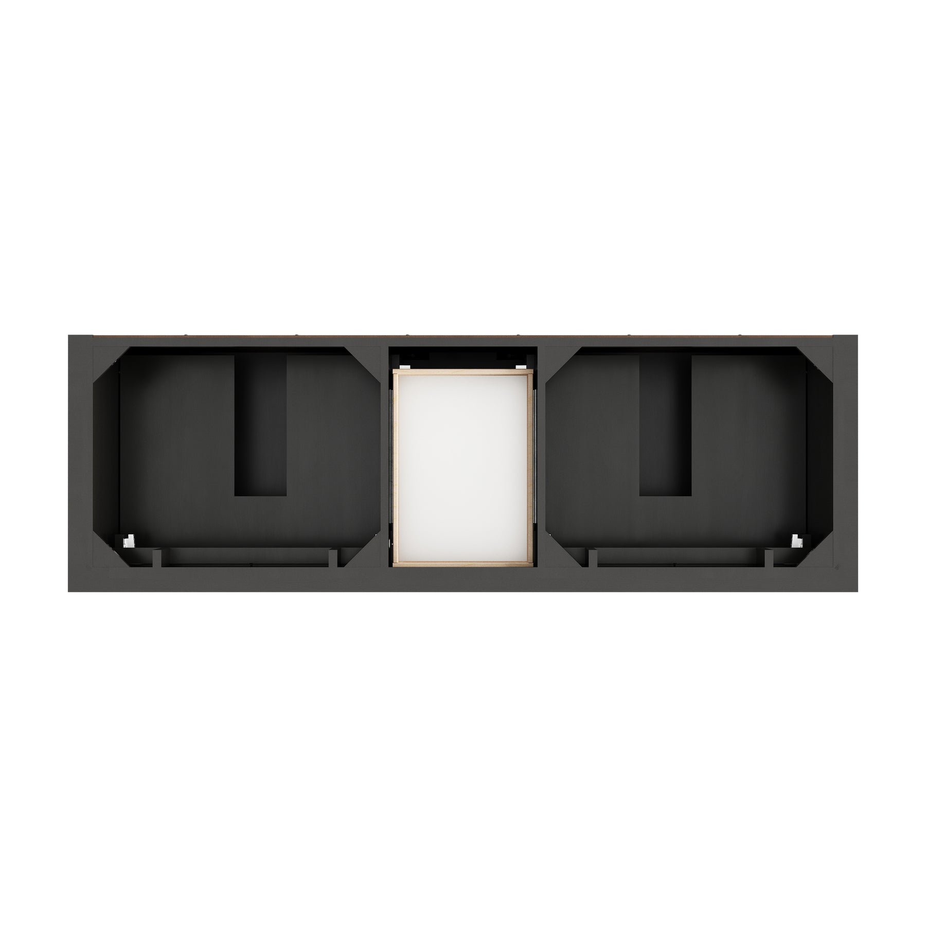 The Brookfield 72" Double Vanity in Black Onyx by James Martin Vanities offers a blend of traditional elegance and contemporary sophistication. The raised panel picture frame doors and detailed corner molding reflect timeless craftsmanship, while the rich Black Onyx finish and Champagne Brass hardware lend a fresh, modern appeal. This beautifully crafted vanity features two double-door cabinets that open to interior shelves, along with four standard drawers for ample storage. The timeless Black Onyx finish lends sophistication and charm to your space. The addition of a Victorian Silver Silestone® top featuring a neutral white and gray background with fine silver veining, along with undermount sinks, completes the look.