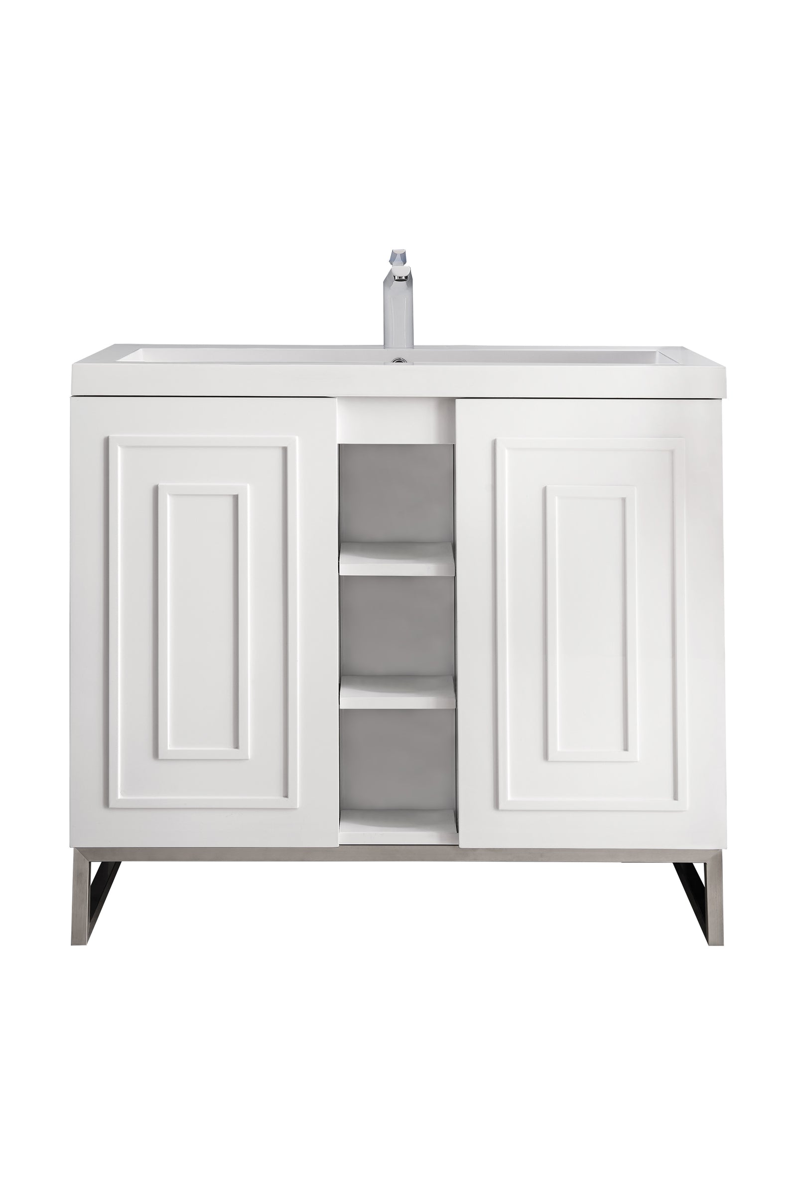 Alicante 39.5" Single Vanity, Glossy White w/ White Glossy Composite Stone Top