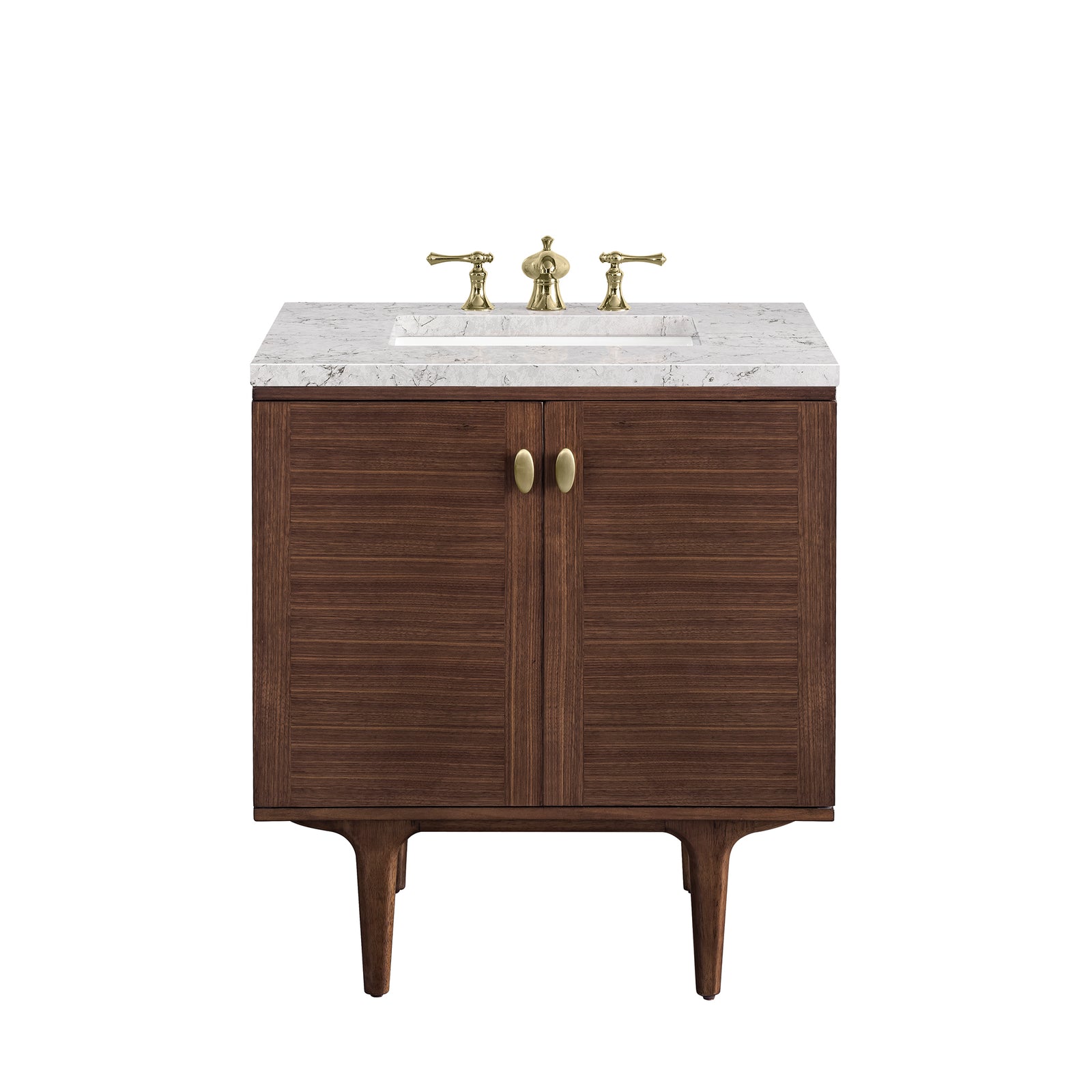 Amberly 30" Single Vanity, Mid-Century Walnut w/ 3 CM Eternal Jasmine Pearl Top