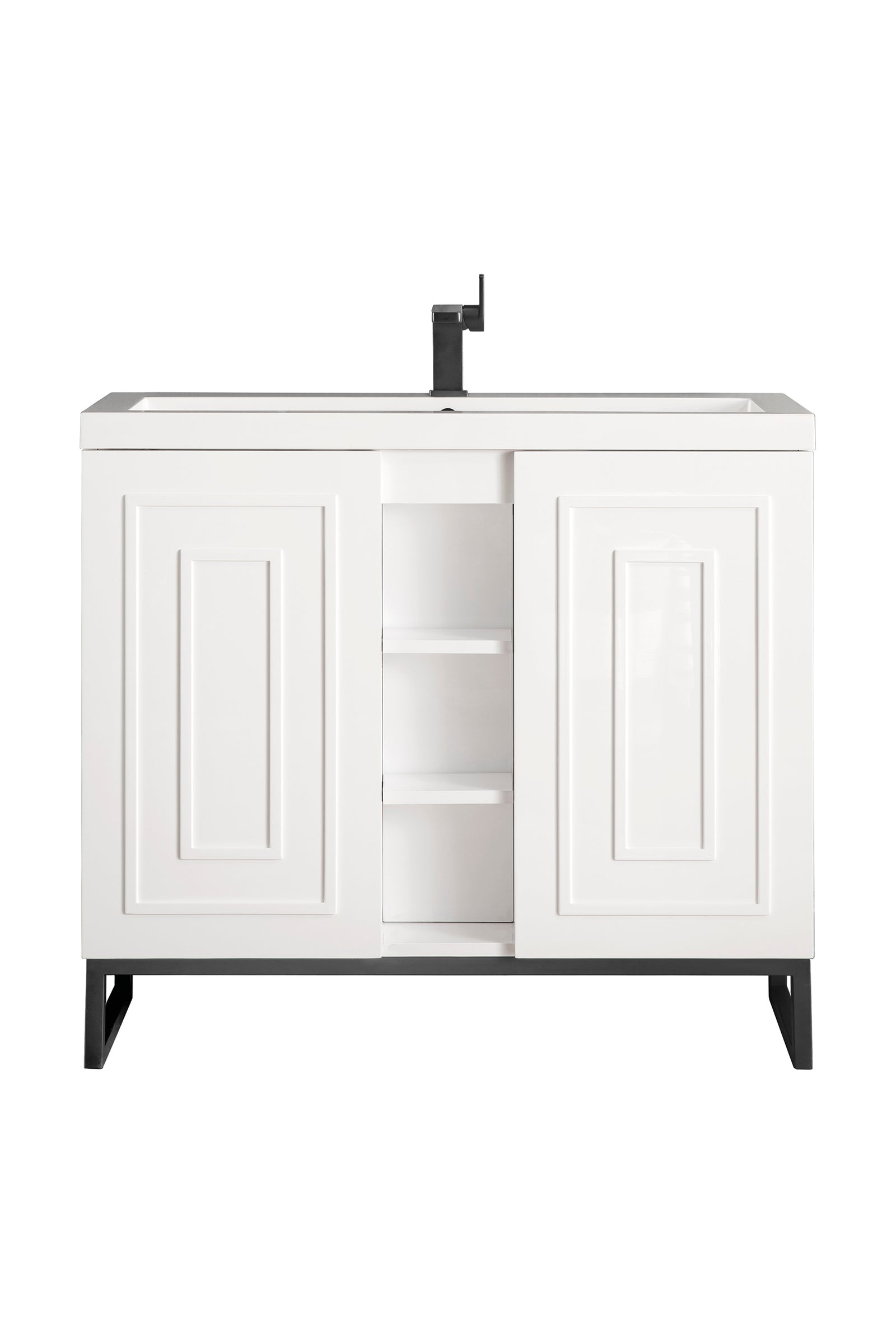 Alicante 39.5" Single Vanity, Glossy White, Matte Black w/ White Glossy Composite Stone Top