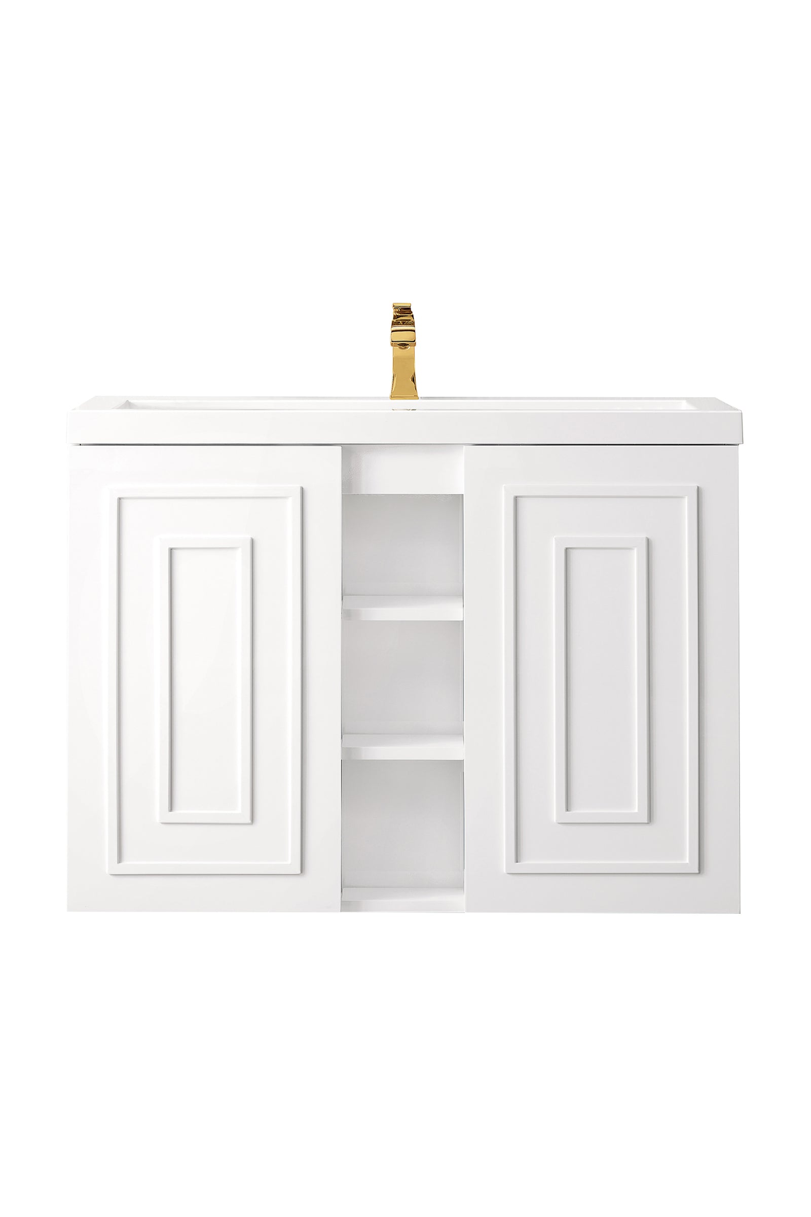 Alicante 39.5" Single Vanity, Glossy White, Radiant Gold w/ White Glossy Composite Stone Top