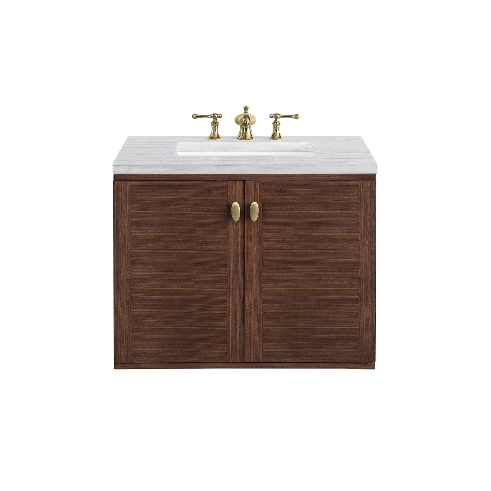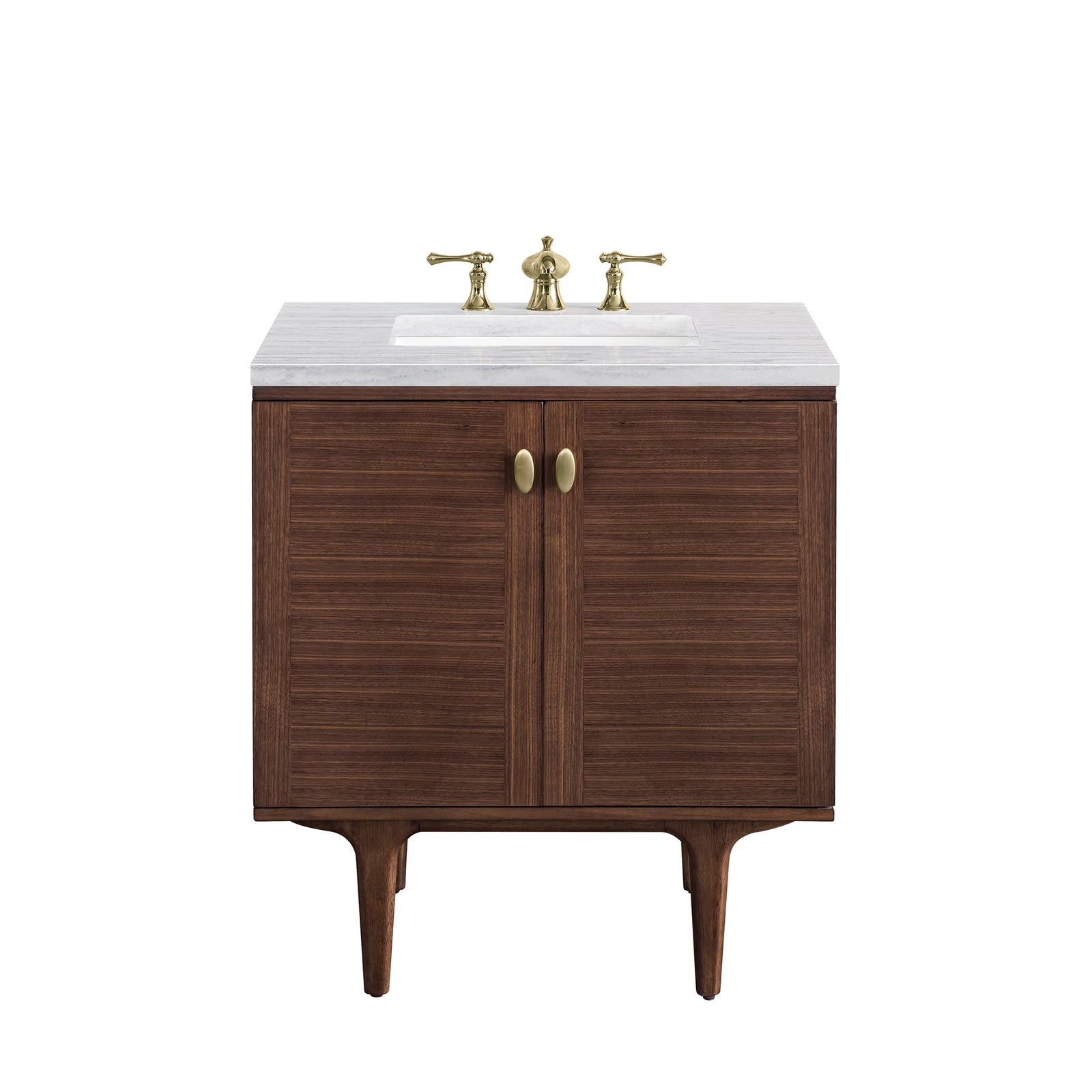 Amberly 30" Single Vanity, Mid-Century Walnut w/ 3 CM Carrara Marble Top