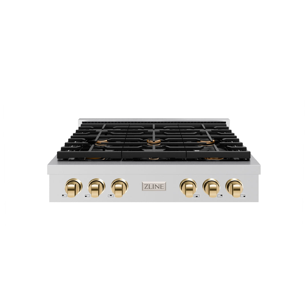 Luxury isn’t meant to be desired - it’s meant to be attainable. The ZLINE 36 in. Autograph Edition Paramount Gas Rangetop with 6 Burners and Porcelain Cooktop in Stainless Steel with Polished Gold Accents (SRTZ-36-G) features 6 Italian-made auto-reignition burners, a hand-crafted porcelain cooktop, enhanced cast iron grates, and elegant polished gold knobs allowing you to master every meal. With a modern, timeless style and refined functionality, ZLINE Paramount Gas Rangetops are masterfully crafted to deliver an elevated culinary experience.