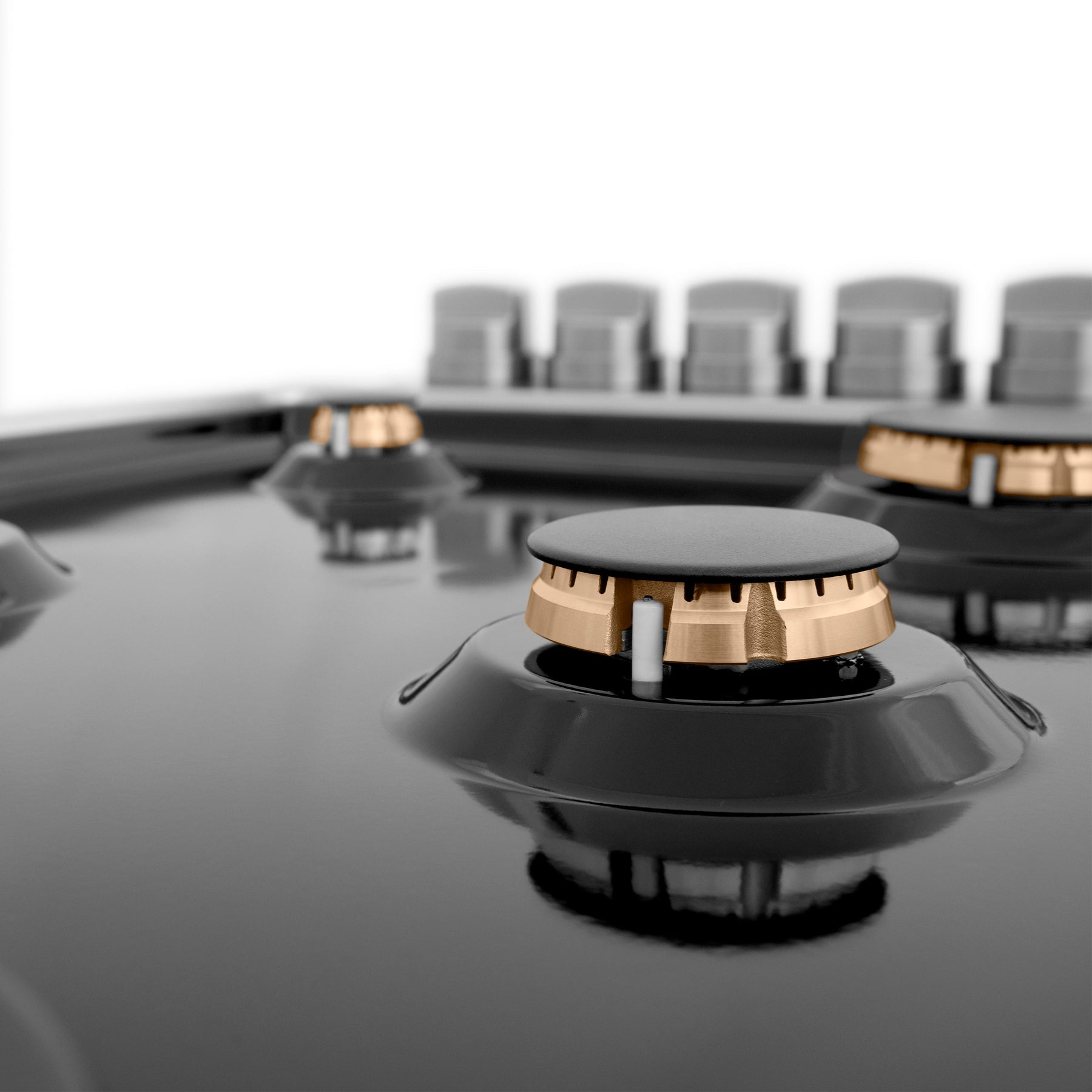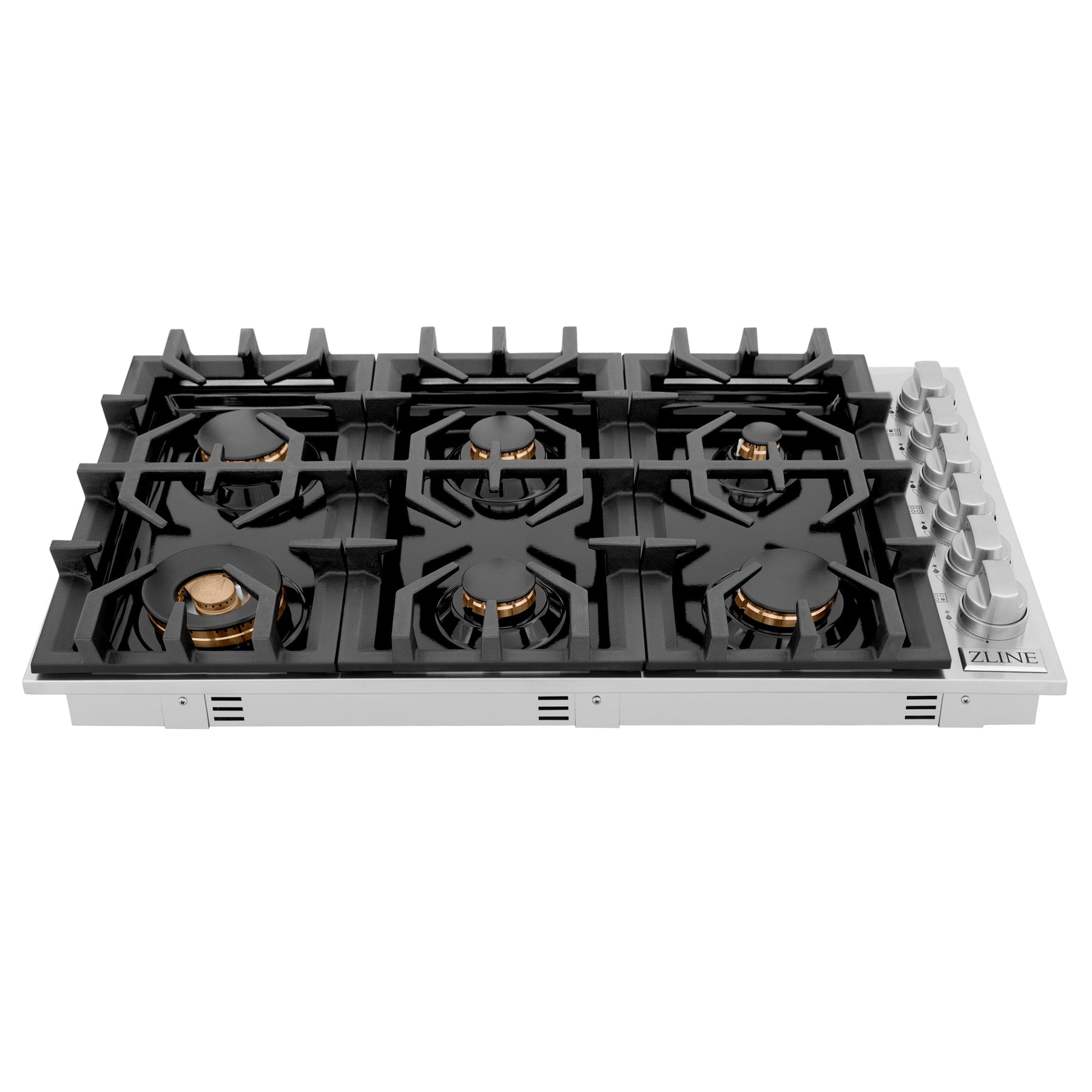 ZLINE's Professional 36" Dropin Cooktop with Black Porcelain Top is complete with a 6 brass burner gas cooktop for energy efficiency, temperature control, and even-cooking.