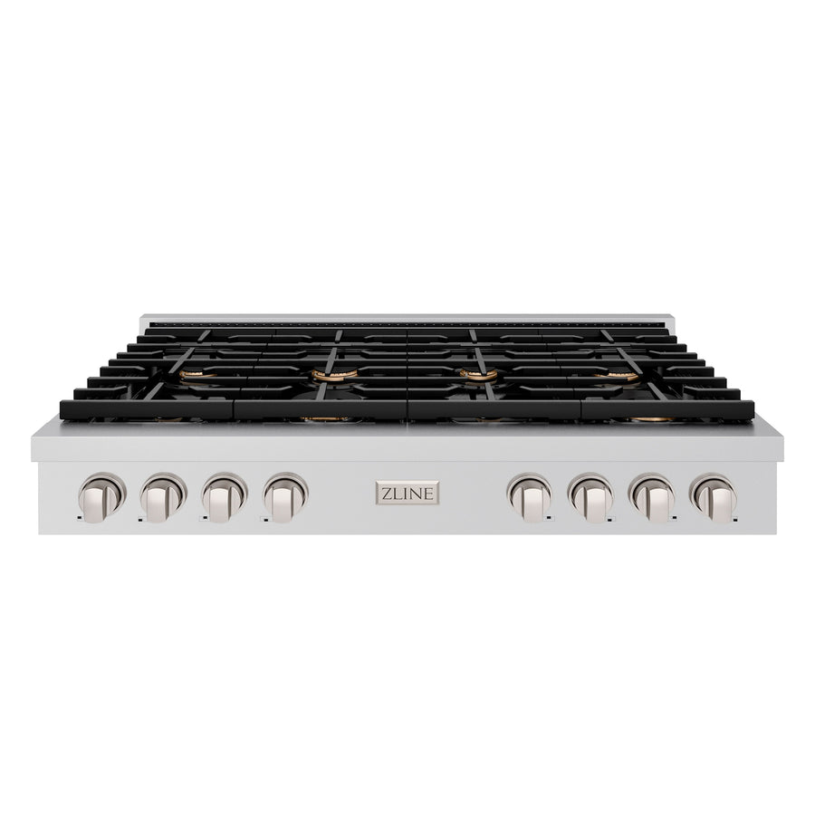 Luxury isn’t meant to be desired - it’s meant to be attainable. The ZLINE 48 in. Paramount Gas Rangetop with 8 Brass Burners and Porcelain Cooktop in Stainless Steel (SRT-BR-48) features 8 Italian-made brass auto-reignition burners, a hand-crafted porcelain cooktop, and enhanced cast iron grates allowing you to master every meal. With a modern, timeless style and refined functionality, ZLINE Paramount Gas Rangetops are masterfully crafted to deliver an elevated culinary experience.