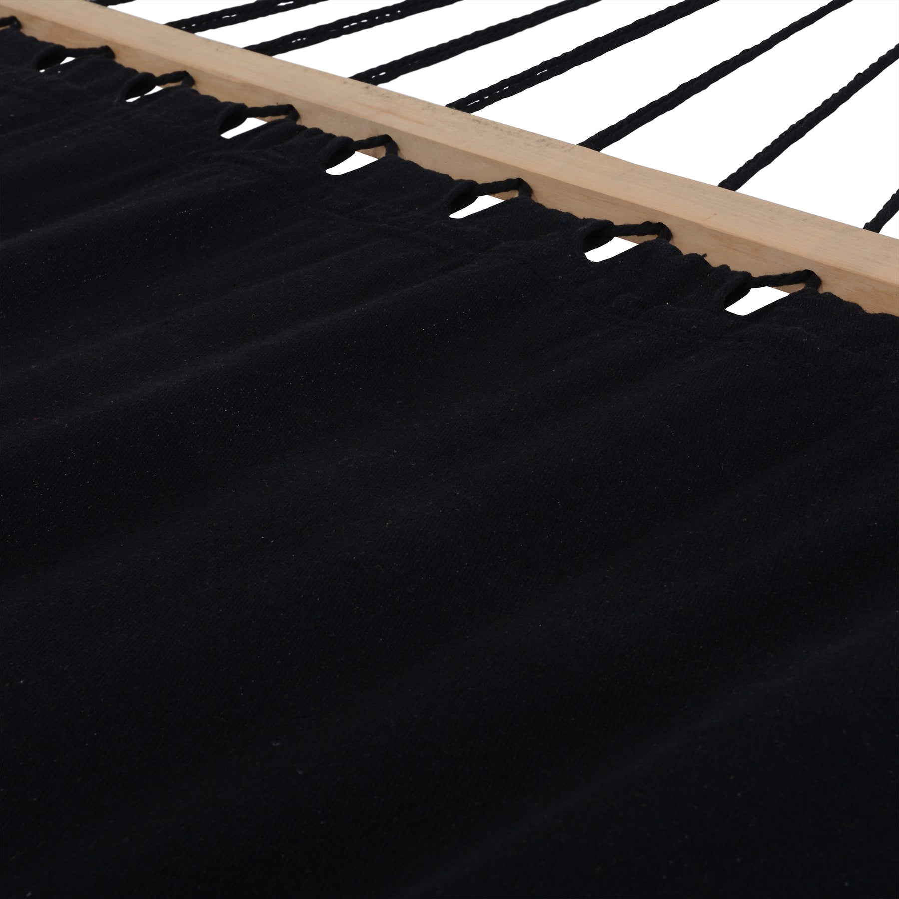 Introducing our Outdoor Wooden Frame Hammock with Black Upholstery – a stylish and comfortable retreat for your outdoor sanctuary. Immerse yourself in the gentle sway of a hammock, supported by a wooden frame and adorned with chic black upholstery. Whether you're seeking a solitary spot for relaxation or a chic seat for socializing, this hammock combines the timeless allure of wood with the sophistication of black upholstery for an elevated outdoor experience and transform your outdoor area into a haven of comfort and style.