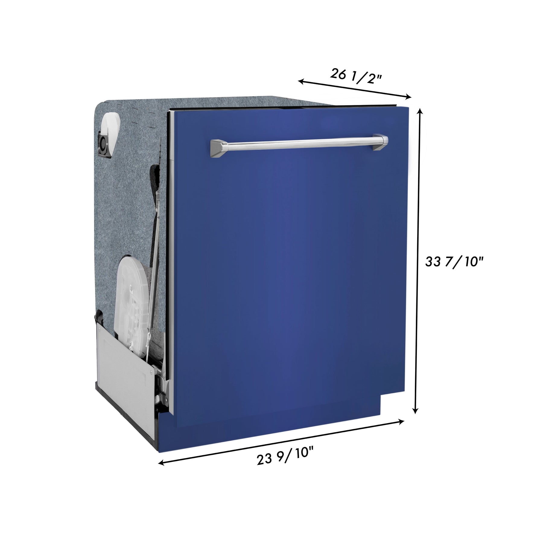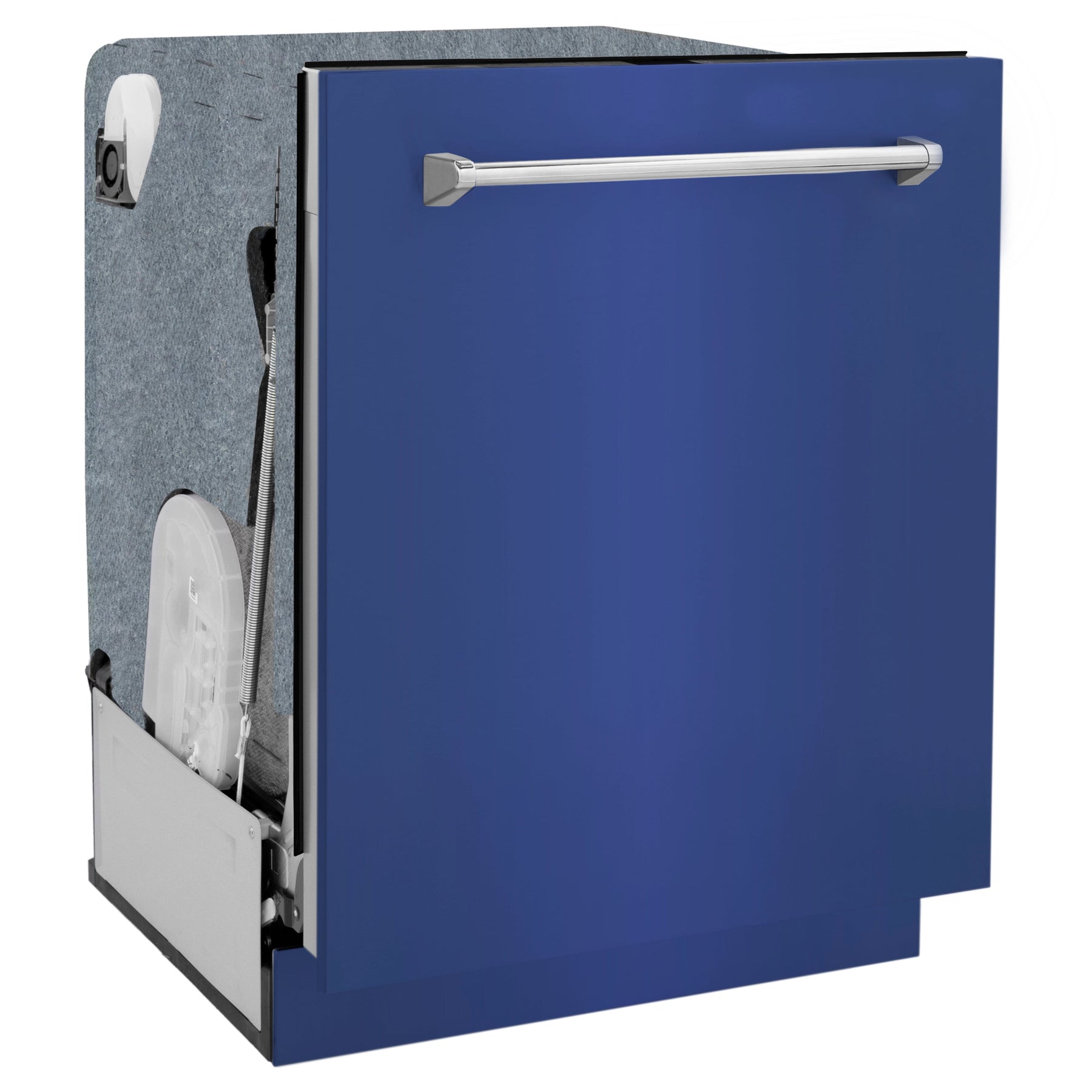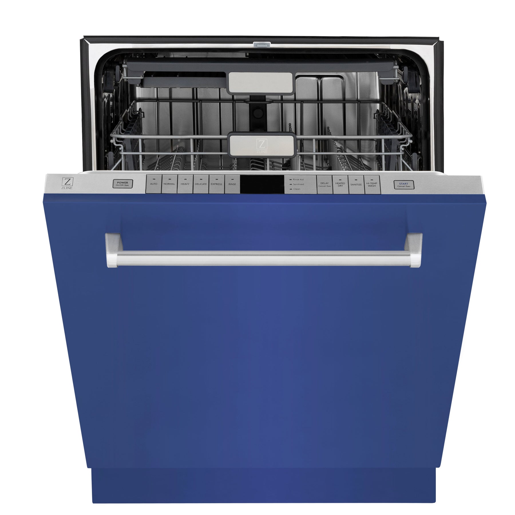 The ZLINE 24" Dishwasher (DWMTZ-BM-24) comes fully equipped with 3 racks, 14 place settings in Blue Matte to match your custom kitchen. Clean your dishes with ease with this ZLINE Dishwasher!