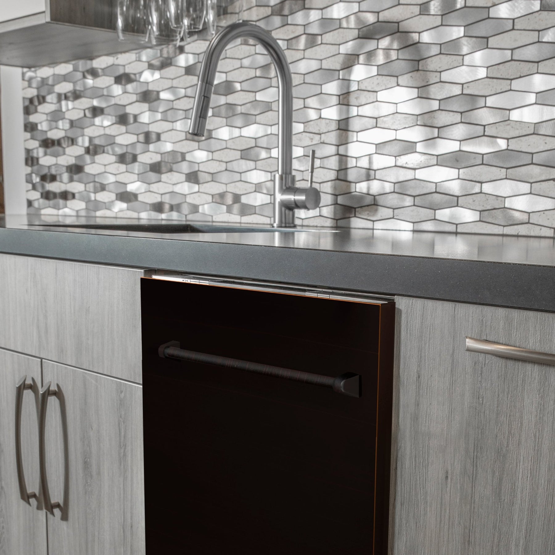 - Bronze Panel Included. Adds sophistication with the included Oil-Rubbed Bronze dishwasher panel