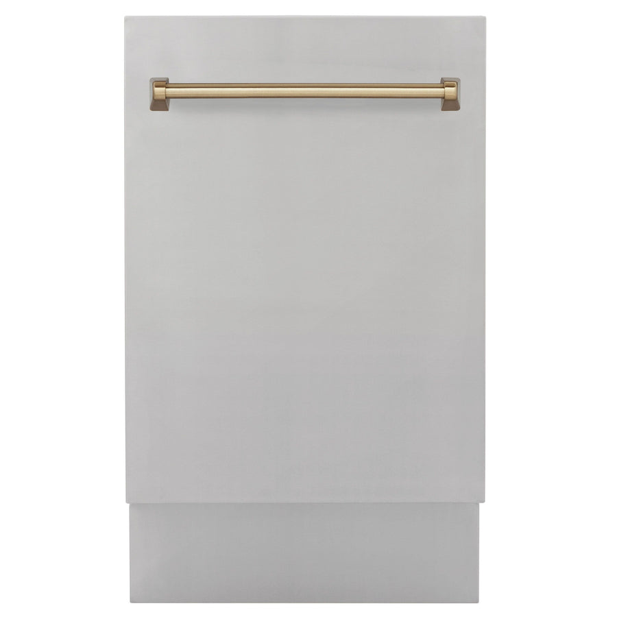 ZLINE Autograph Series 18 In. Dishwasher in DuraSnow® Stainless Steel with Gold Handle, DWVZ-SN-18-G