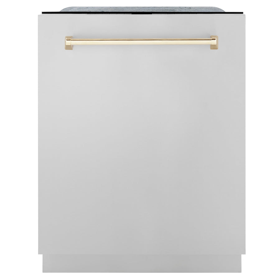 ZLINE Autograph Series 24 inch Tall Dishwasher in Stainless Steel with Gold Handle, DWVZ-304-24-G