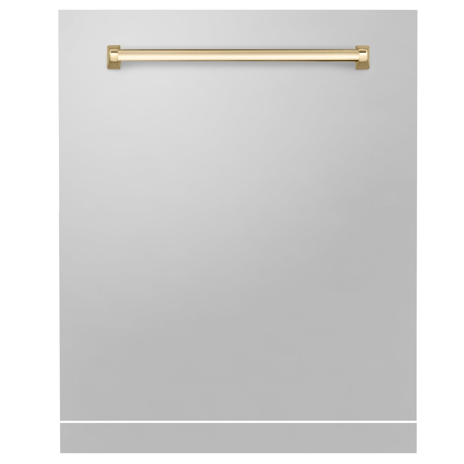 ZLINE Autograph Edition 24" Tallac Series 3rd Rack Top Control Built-In Tall Tub Dishwasher in Stainless Steel with Champagne Bronze Handle, 51dBa (DWVZ-304-24-CB)