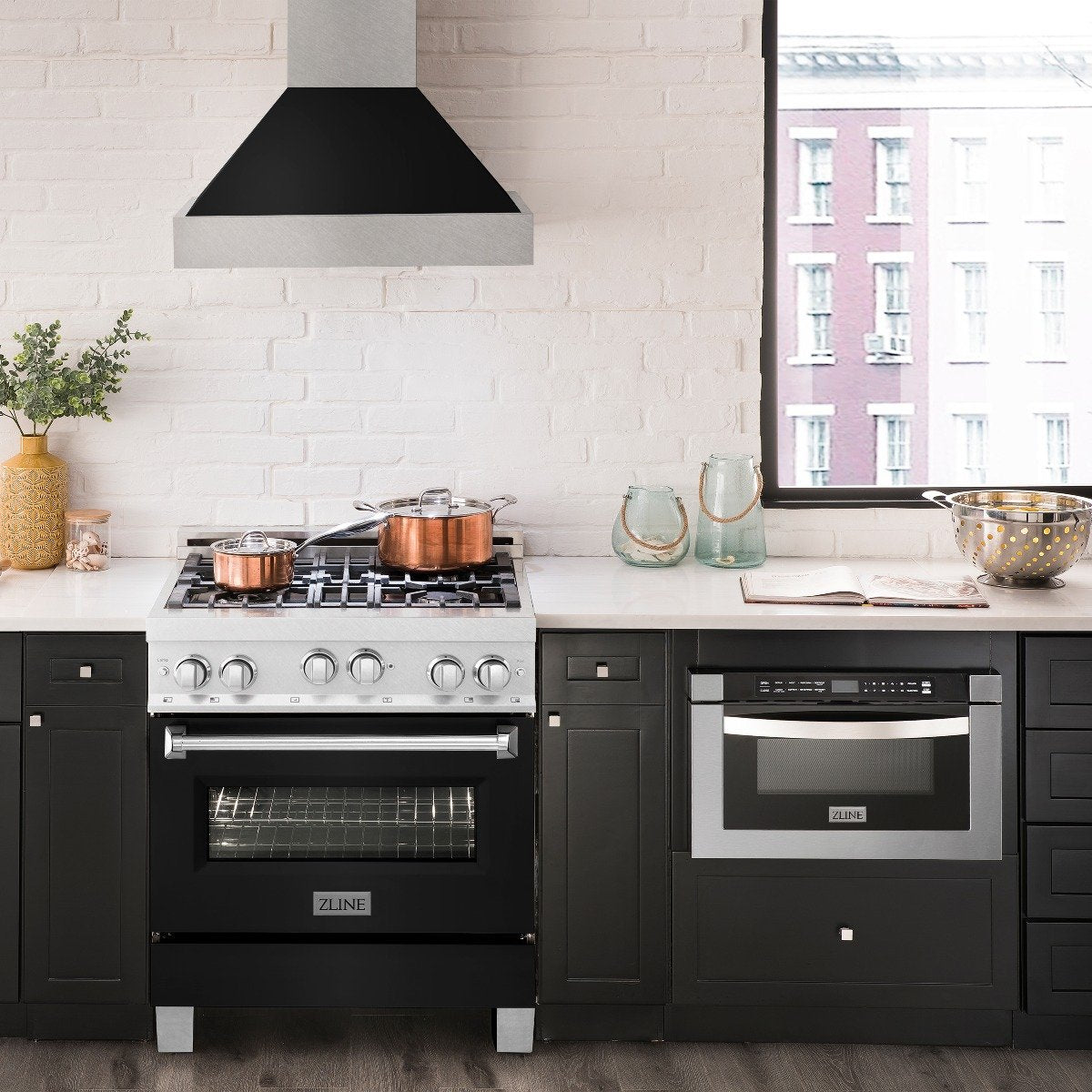 - ZLINE 30 in. Professional Gas Range in DuraSnow® Stainless Steel with Black Matte Door, RGS-BLM-30