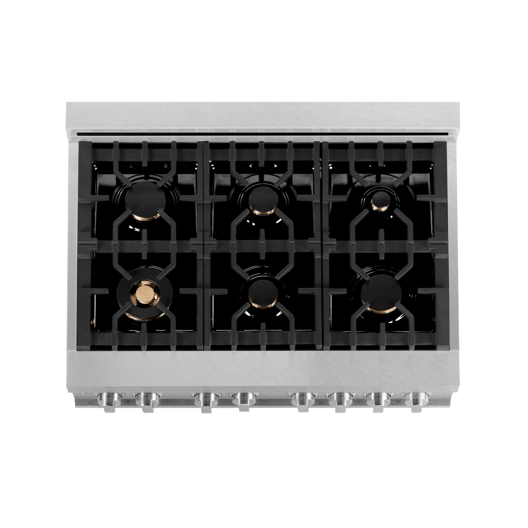 • Italian-Made Sealed Brass Burners. Industry-leading gas cooktop includes 6 sealed brass burners with cooking power ranging from 4,200 - 18,000 BTUs providing a timeless look and even heat distribution