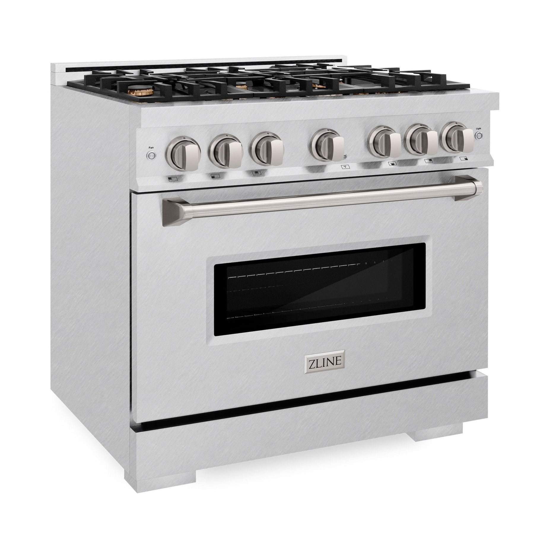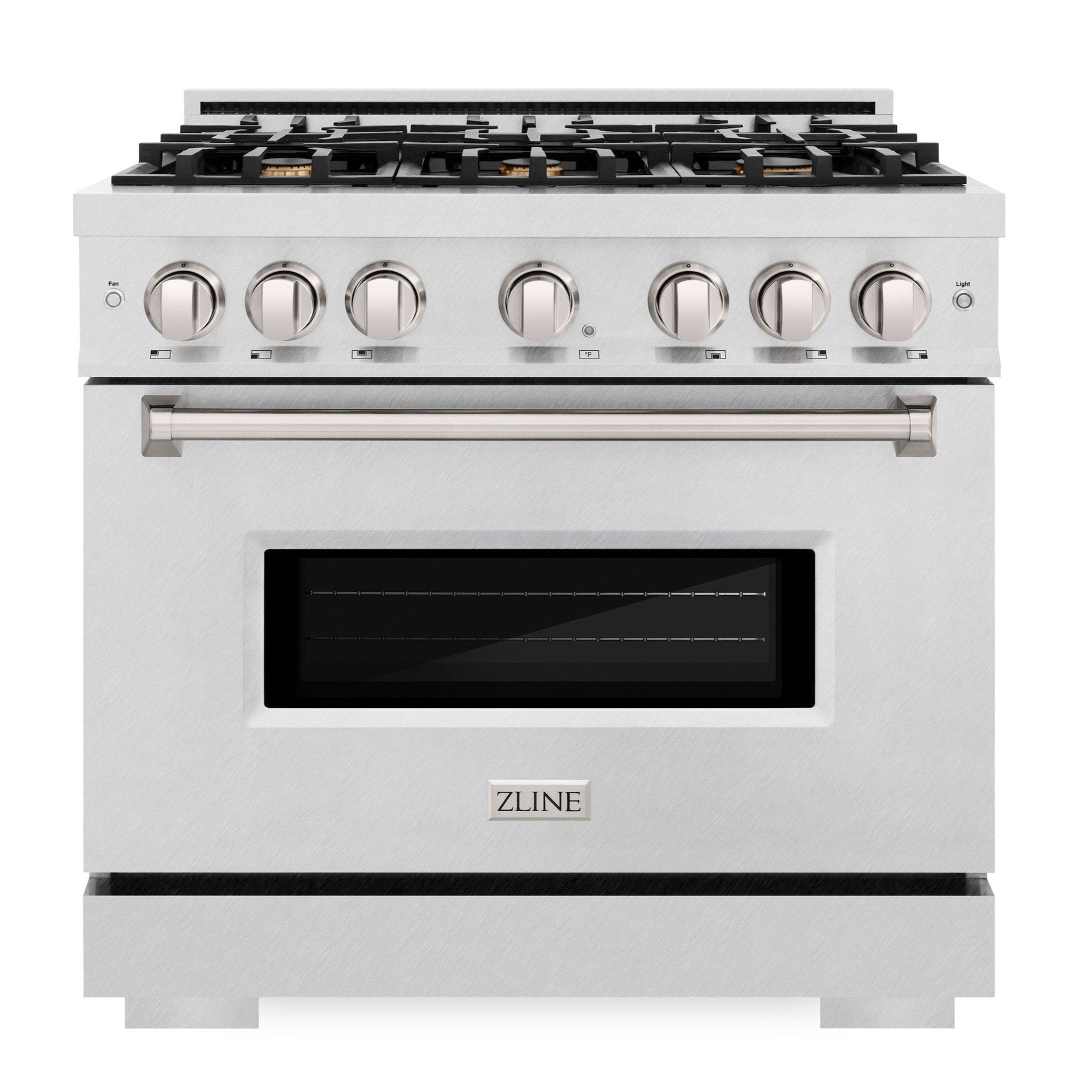 The ZLINE 36" 5.2 cu. ft. Classic Dual Fuel Range with Gas Cooktop and Electric Convection Oven in DuraSnow Stainless Steel with 6 Brass Burners (CDRS-BR-36) combines the elegance of a hand-finished porcelain gas cooktop with 6 Italian-made brass auto-reignition burners, an electric convection oven with an energy-efficient cooling fan to ensure quiet operation, and a Landscape oven door window design allowing you to master every meal. With a modern, timeless style and refined functionality, ZLINE Classic Dual Fuel Ranges are masterfully crafted to deliver an elevated culinary experience.