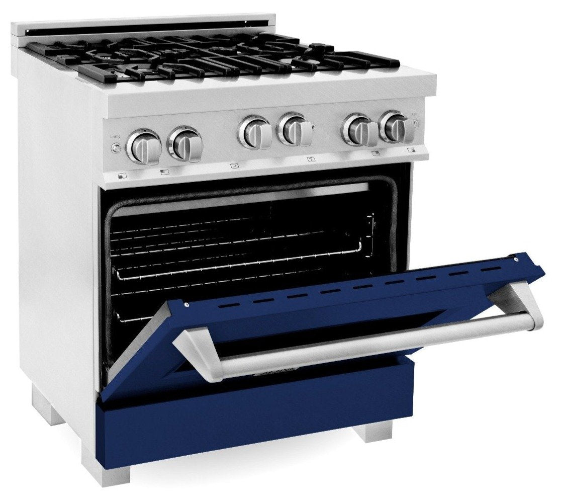 - ZLINE 30" Professional Gas Burner/Gas Oven in DuraSnow® Stainless with Blue Gloss Door, RGS-BG-30
