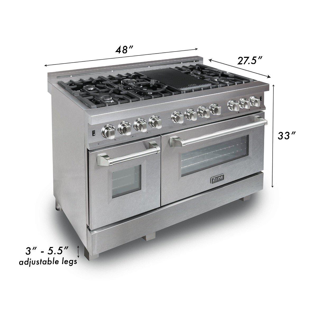 - ZLINE ranges feature stainless steel, easy-to-install adjustable legs