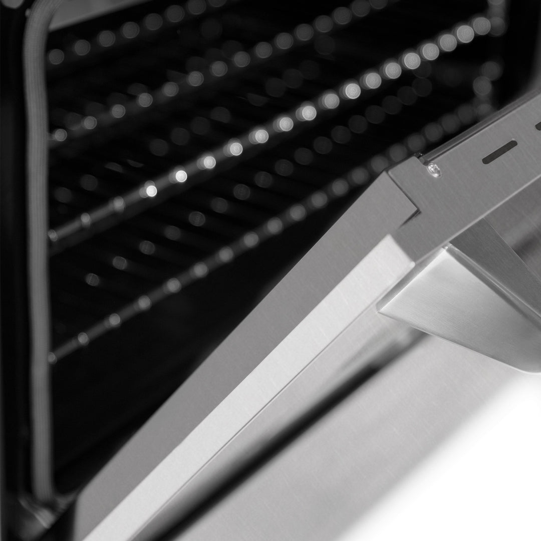Experience Attainable Luxury® with the ZLINE Dual Fuel Professional Range. Combining both professional aesthetics and functionality, this range provides the ultimate luxury experience for a fraction of the cost. Achieve optimal results with cooktop cooking power from 4,200 up to 18,000 BTUs provided with sealed burners. Rely on precise and even heating for every homemade dish with an electric convection oven. Enjoy an ultra-deep oven capacity with a three-layered insulated glass oven for efficient cooking every use. With upgraded premium features such as SmoothSlide ball-bearing oven racks, dual lighting, and adjustable legs, this range is certain to wow both the chef and guests alike. Assembled with the highest quality materials on the market, this range offers a durable, scratch-resistant porcelain cooktop and ZLINE’s exclusive single piece cast iron grate. Cook with ease with StayPut Italian hinges, providing a safe baking environment to enjoy for years to come. ZLINE stands by the longevity and durability of their professional ranges, while ensuring further protection and peace of mind with a worry-free warranty. The ZLINE Dual Fuel Range ships next business day when in stock.