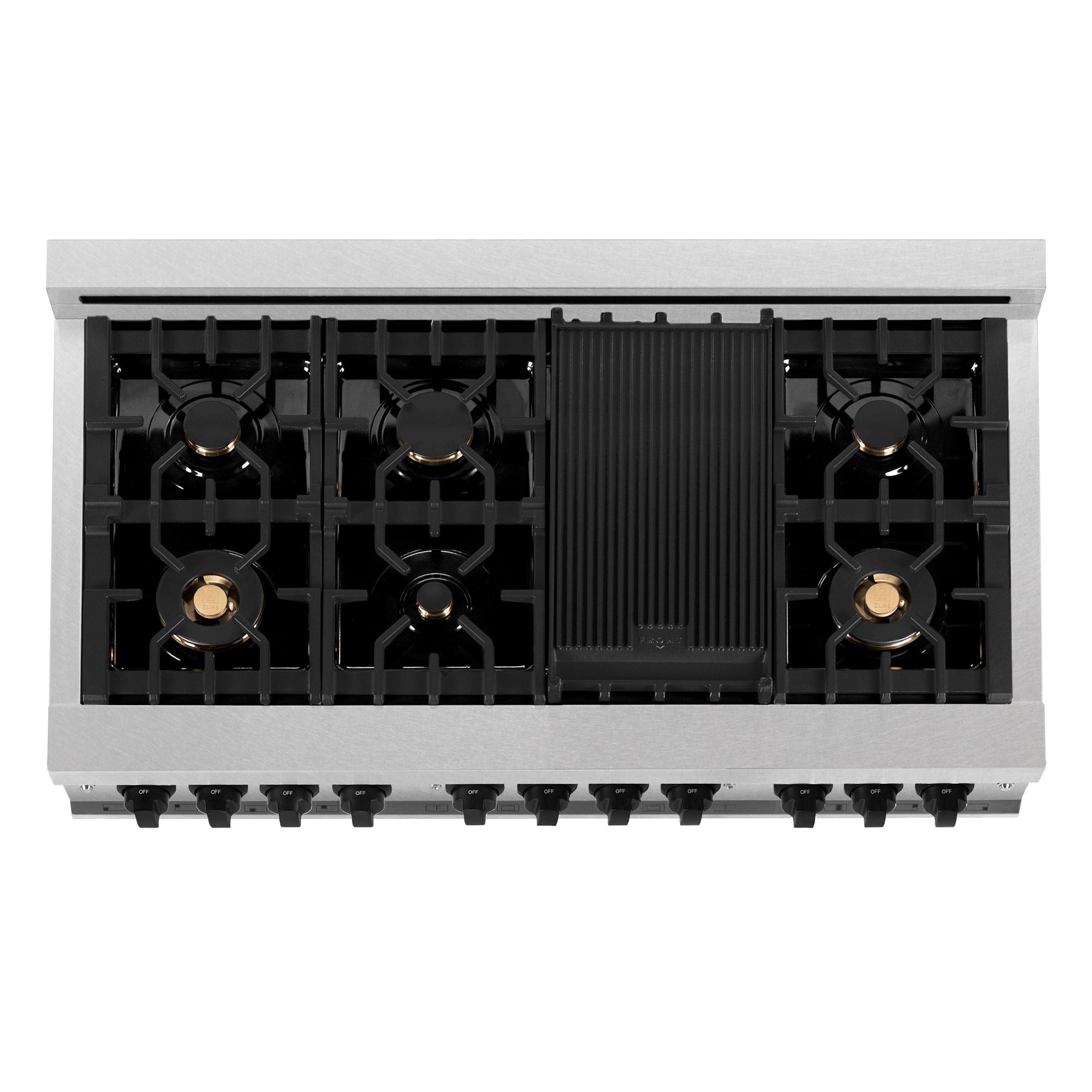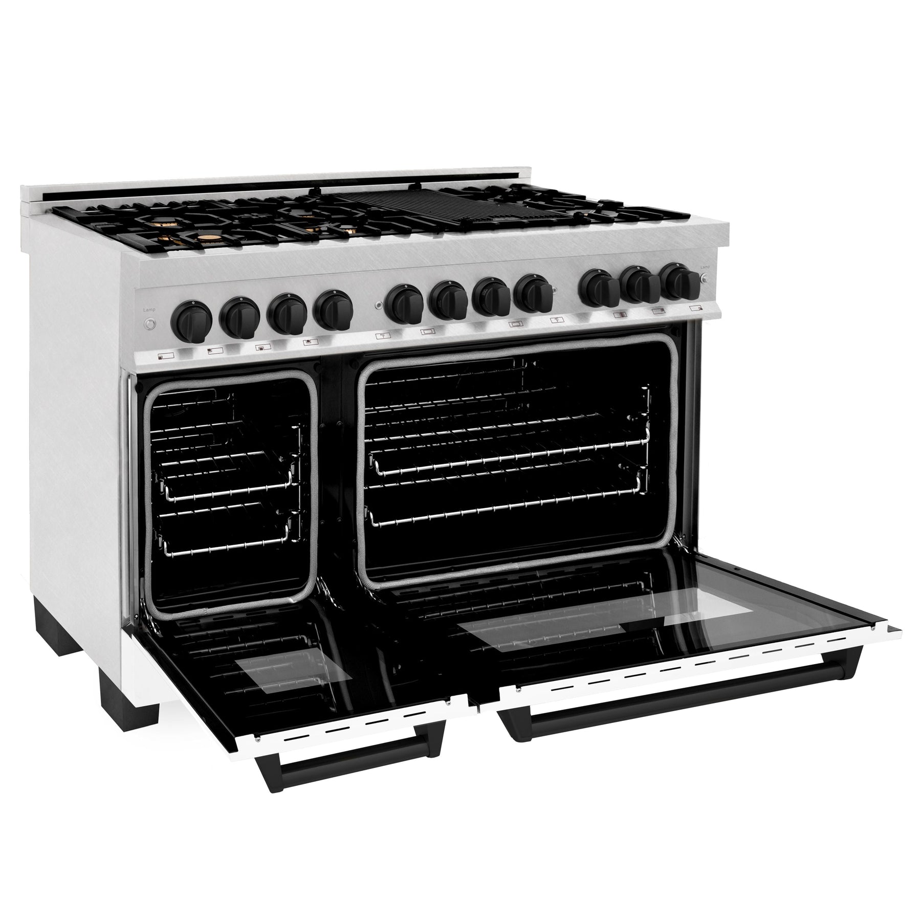 - ZLINE Autograph Edition 48 in. 6.0 cu. ft. Range, Gas Stove/Electric Oven in DuraSnow® with White Matte Door, Matte Black Accents, RASZ-WM-48-MB