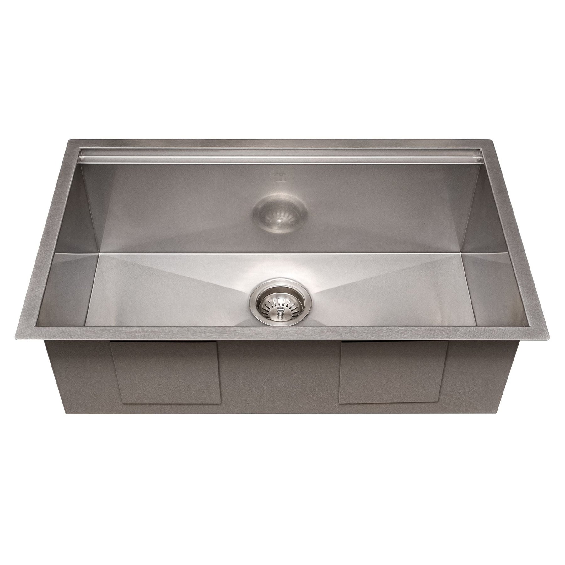 Each ZLINE Sink is hand crafted and intuitively designed to offer the most efficient washing experience. With functionality and bold design in mind, each sink offers: Industrial grade rust-resistant stainless steel ensuring durability and longevity. Extra deep, high capacity bowls/basins offering maximum room for any size wash job. Creased accent lines and basin sloping create superior drainage, providing more usable space and eliminating free standing water 3 times faster than our competitors. All ZLINE sinks have garbage disposal compatibility (sold separately) and are designed geometrically to silence sound and create a quieter work space.