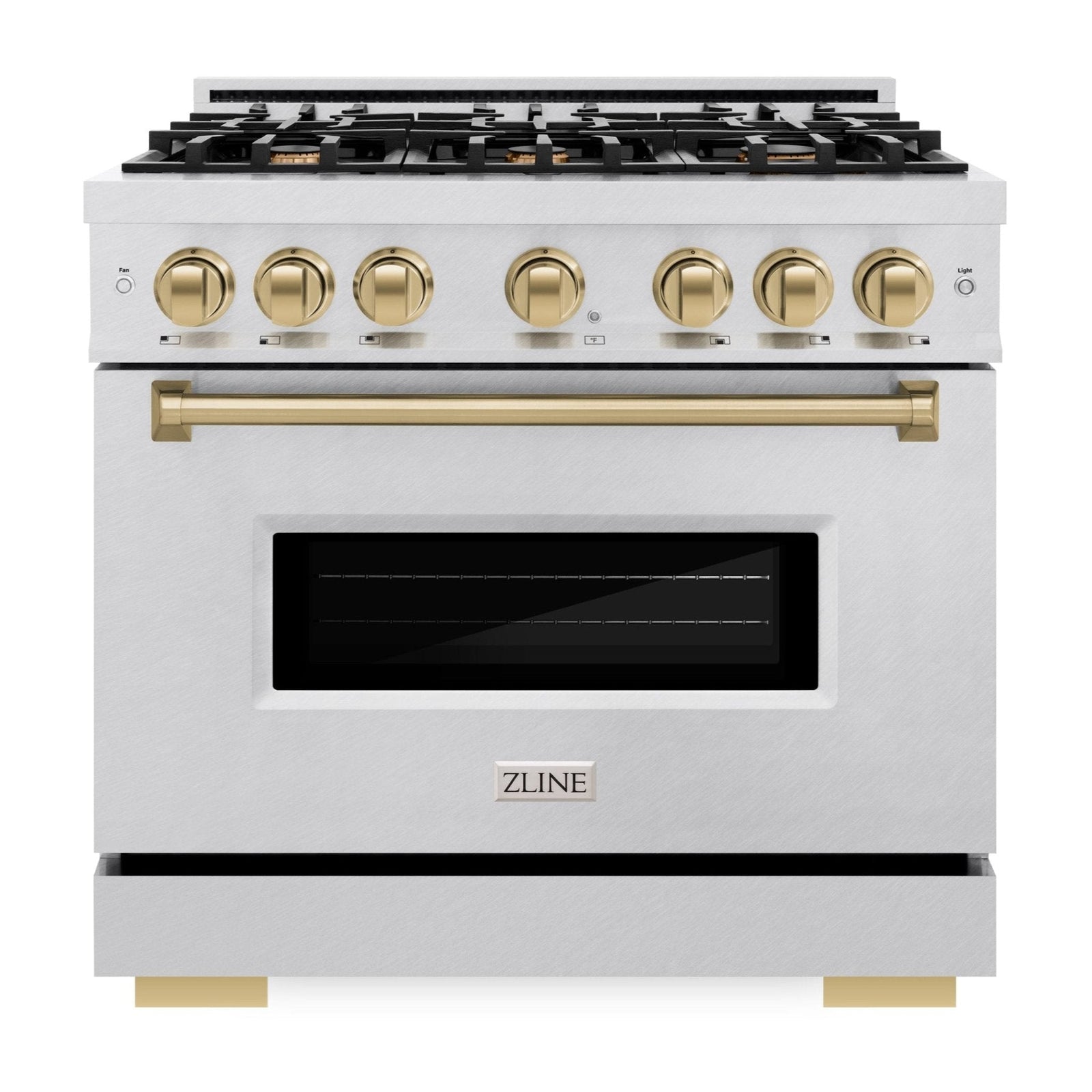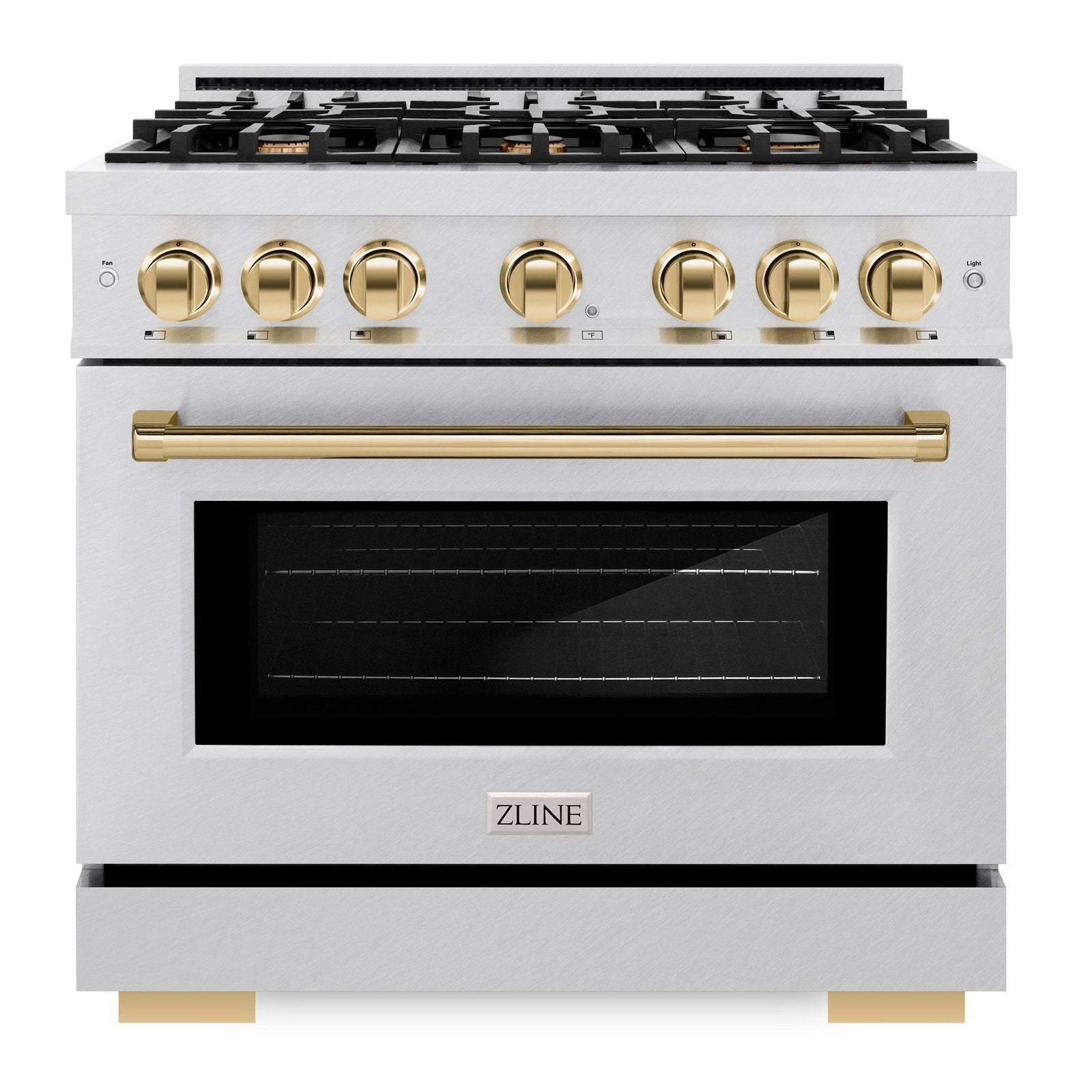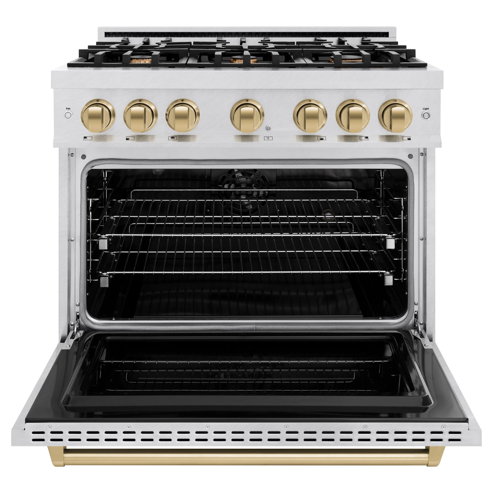 ZLINE Autograph 36" 5.2 cu. ft. Paramount Gas Range with Convection Gas Oven in DuraSnow® Stainless Steel and Gold Accents, SGRSZ-36-G