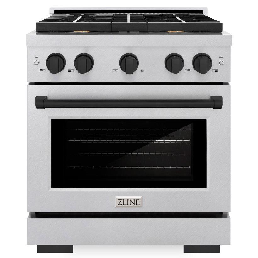 ZLINE Autograph 30" 4.2 cu. ft. Paramount Dual Fuel Range with 4 Burners in DuraSnow® Stainless Steel with Matte Black Accents, SDRSZ-30-MB