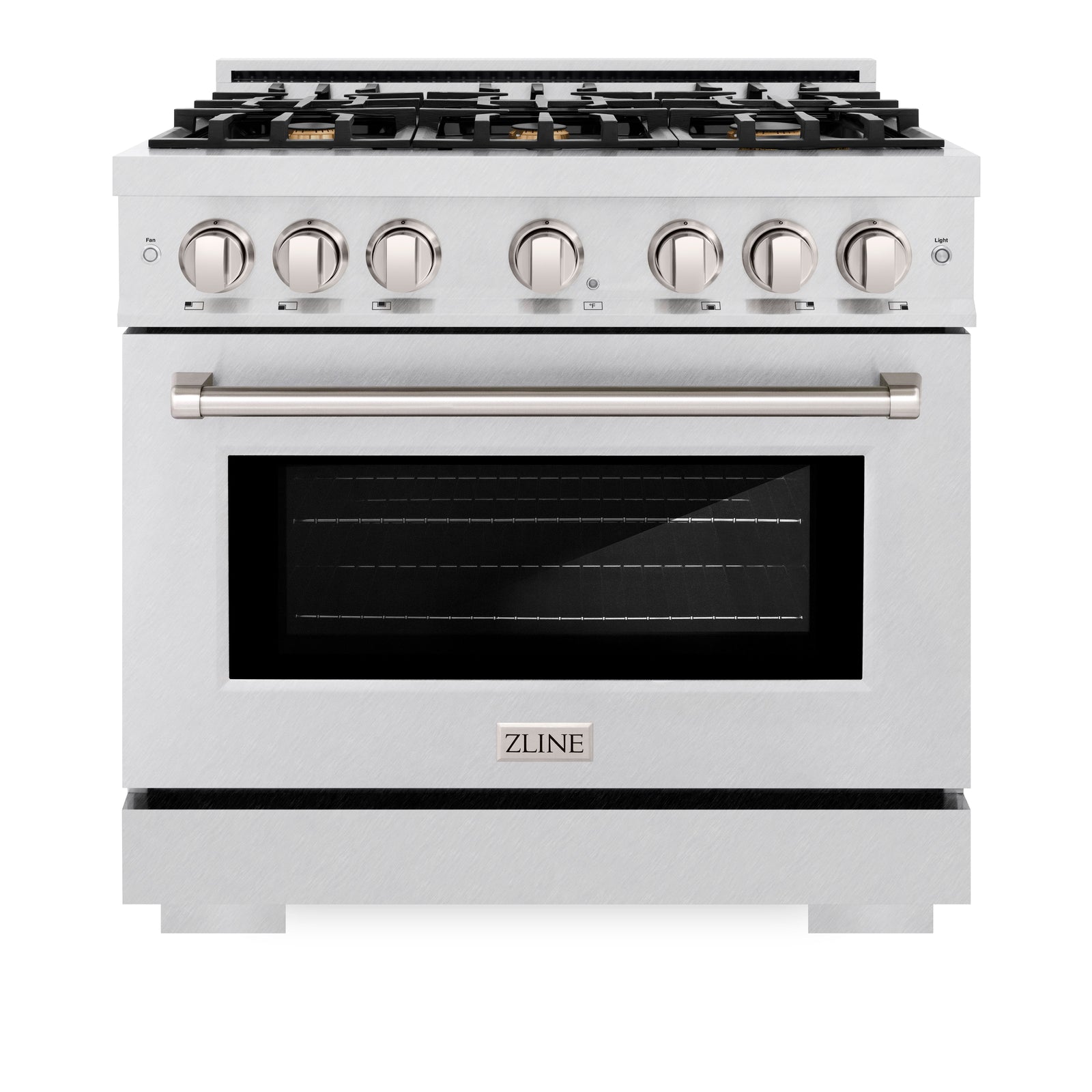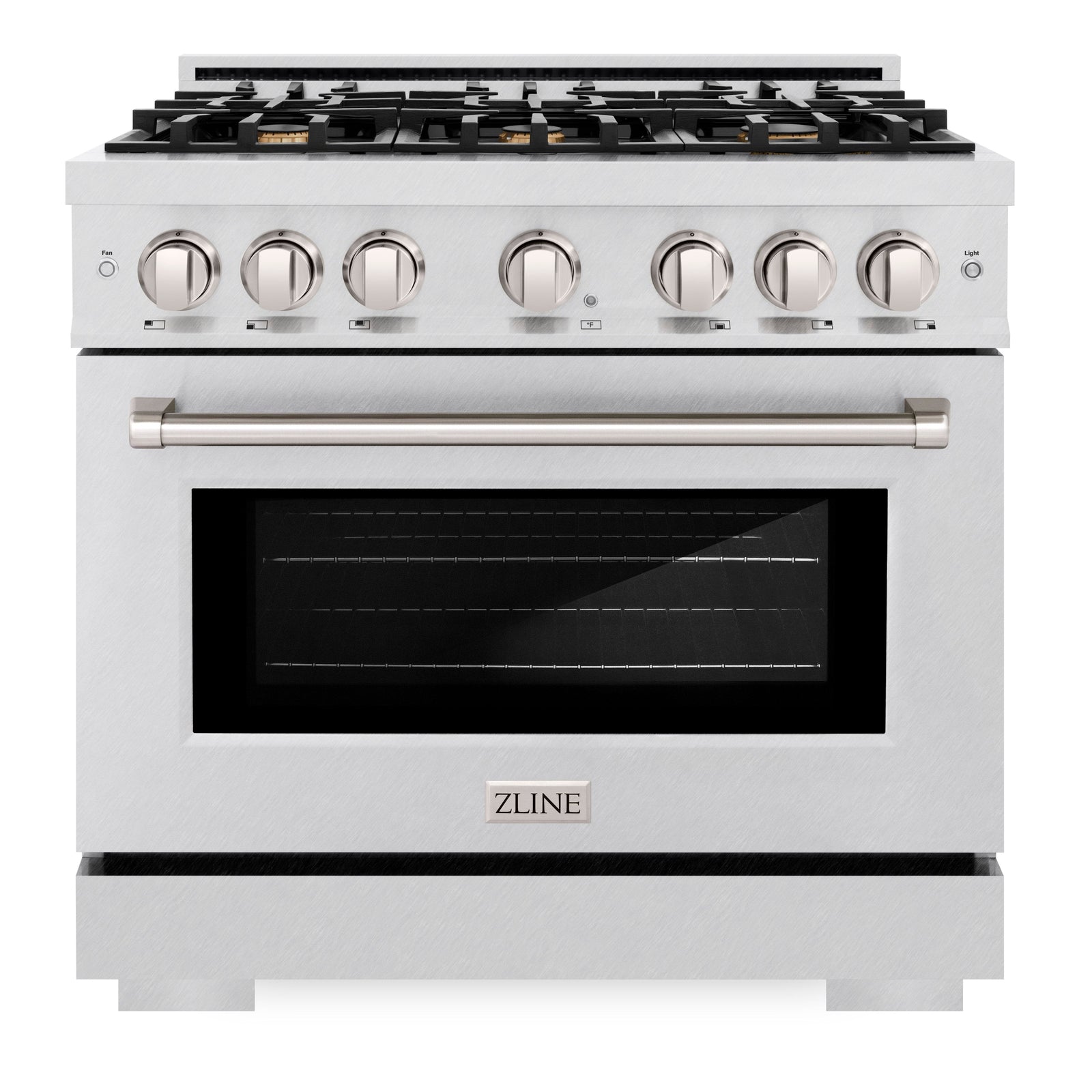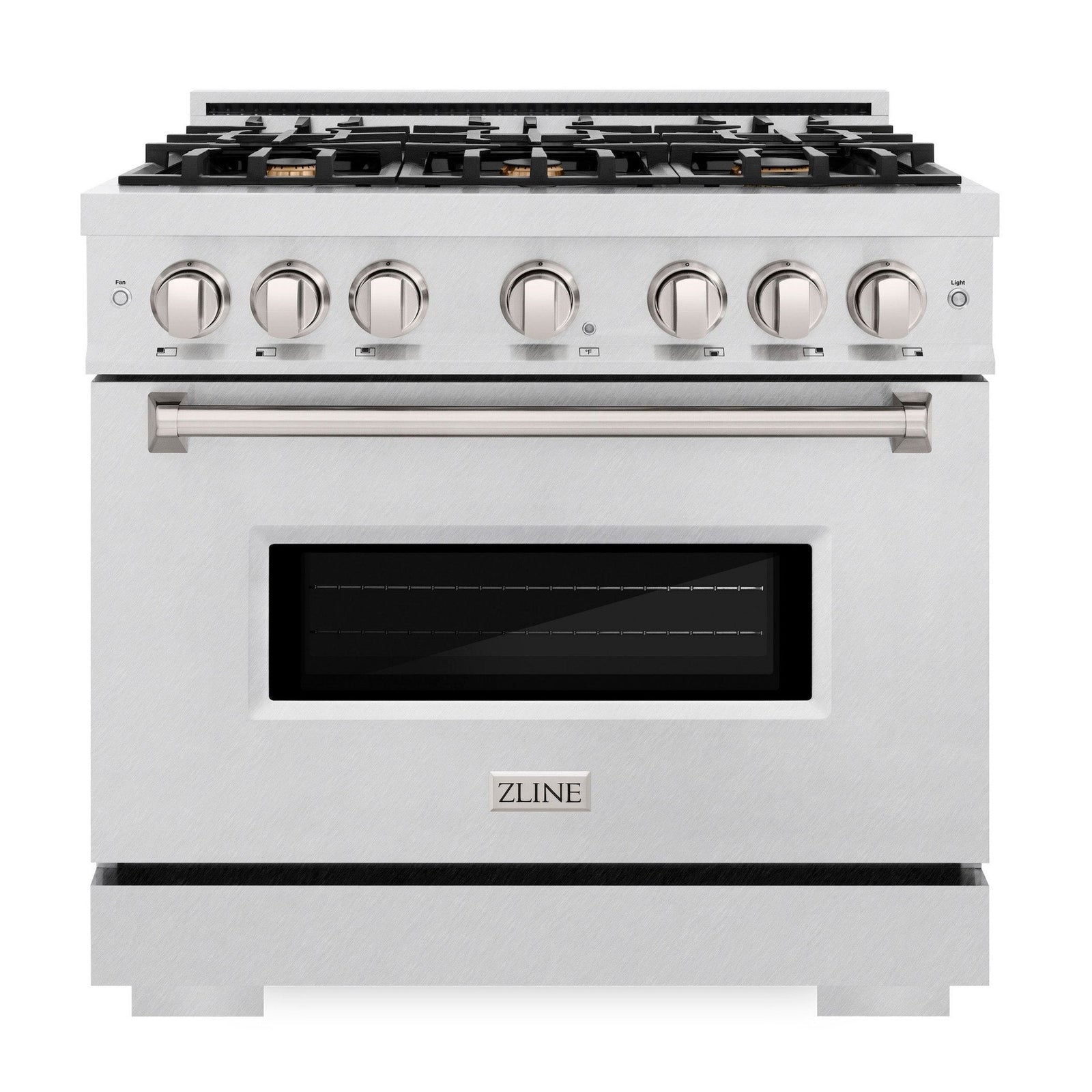 ZLINE 36 in. Gas Range with DuraSnow® Door & 36 in. Range Hood Appliance Package, 2KP-RGSNRH36