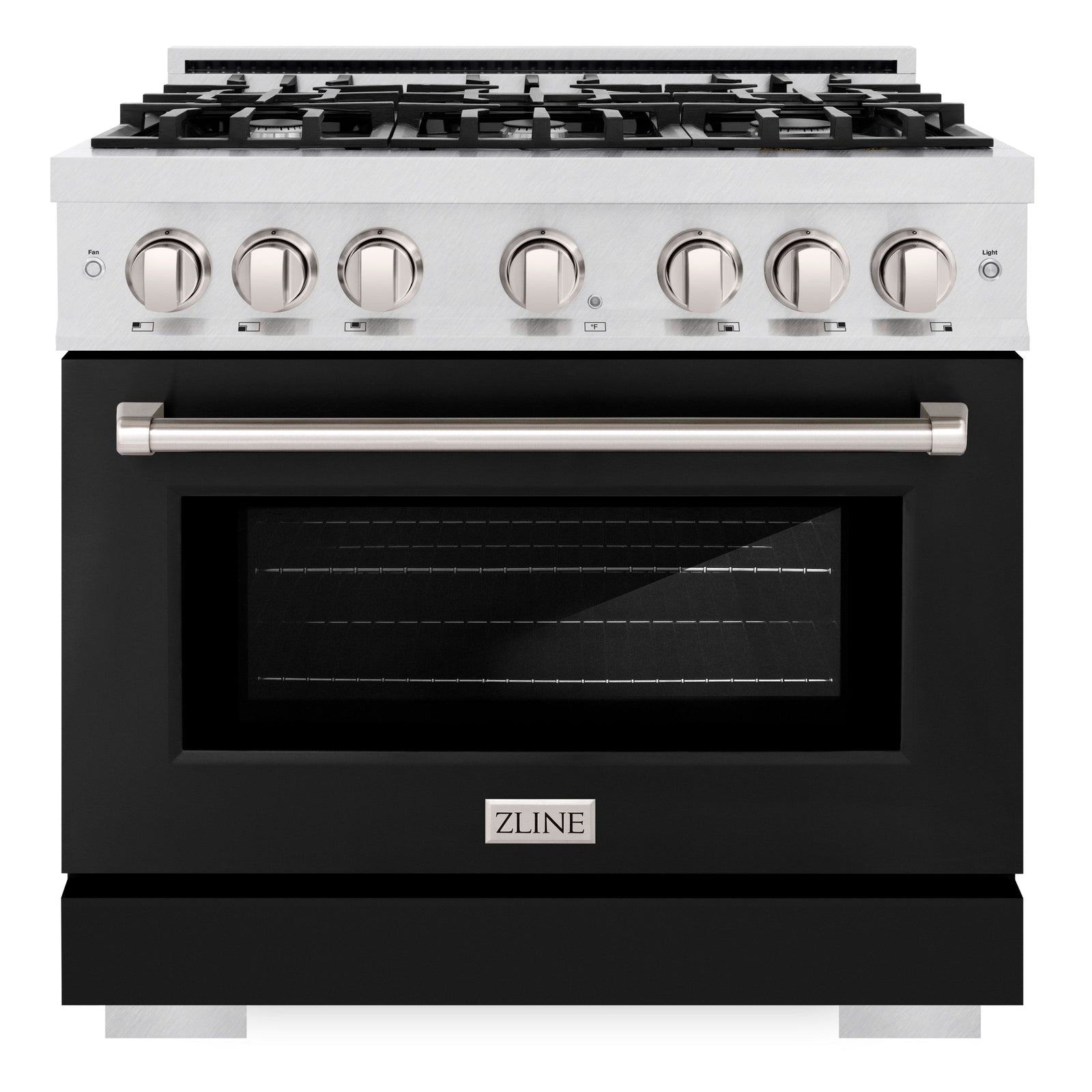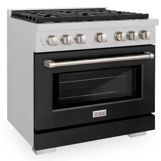 ZLINE 36" 5.2 cu. ft. Select Gas Range with 6 Burners in DuraSnow® Stainless Steel with Black Matte Door, HGRS-BLM-36